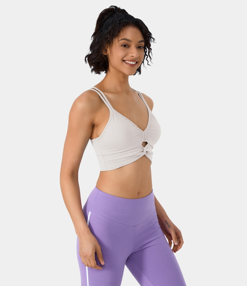 Halara Low Support Double Straps Twisted Barre Ballet Dance Sports Bra Women's Tops Blanc de Blanc | TLHGDAB-59