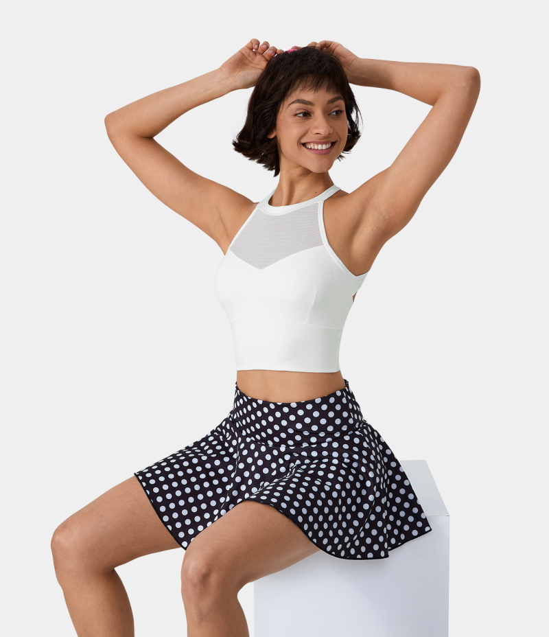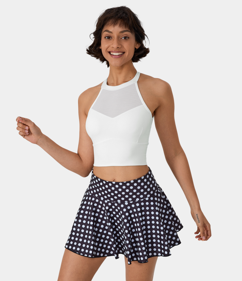 Halara Low Support Halter Neck Contrast Mesh Backless Twisted Sports Bra Women's Tops White | FUZLWYN-01