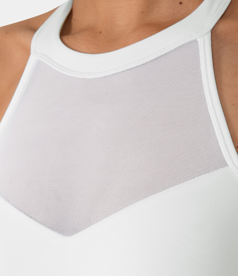 :: Halara Low Support Halter Neck Contrast Mesh Backless Twisted Sports Bra Women's Tops White | FUZLWYN-01