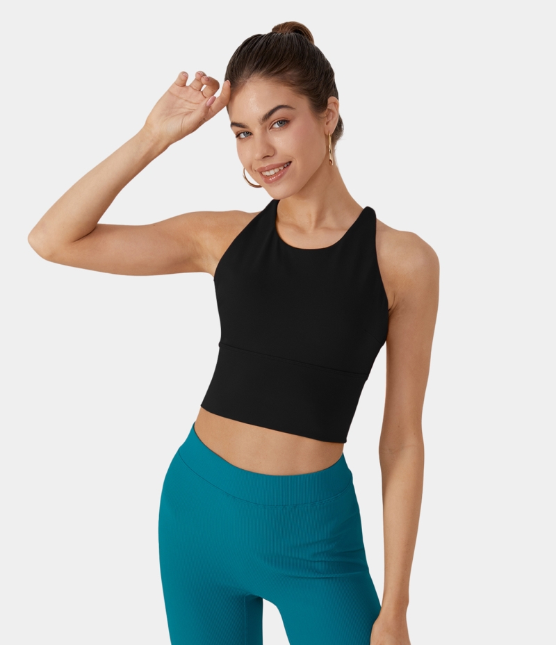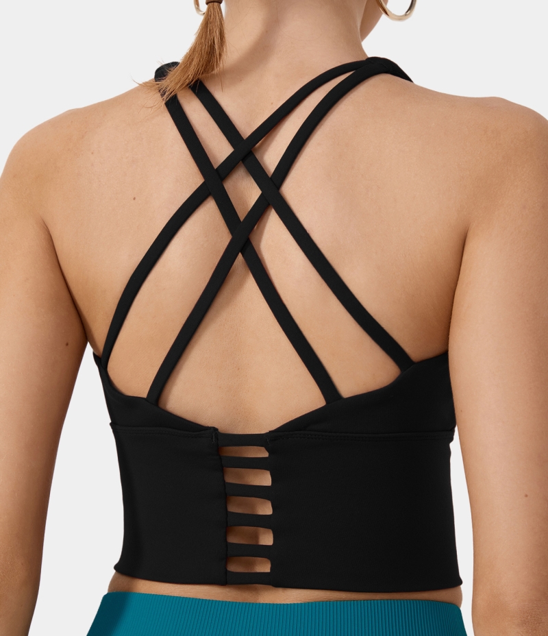 :: Halara Low Support High Neck Longline Yoga Sports Bra-DD/DDD/F Cups Women's Tops Black | YMRKNQE-14