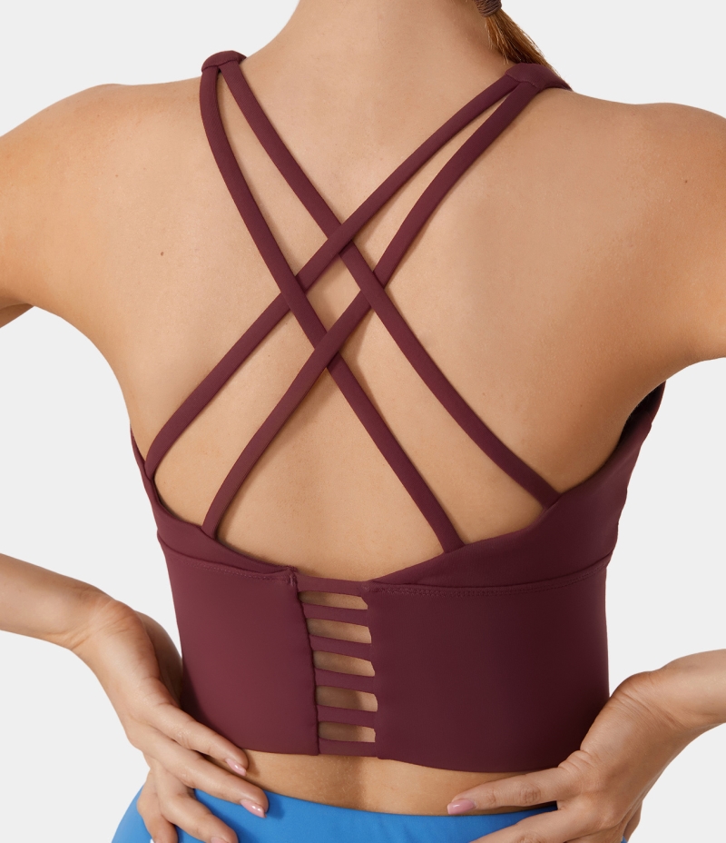 :: Halara Low Support High Neck Longline Yoga Sports Bra-DD/DDD/F Cups Women's Tops Cabernet | ODSIEYV-89
