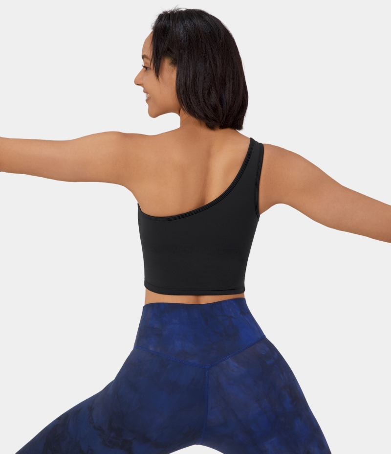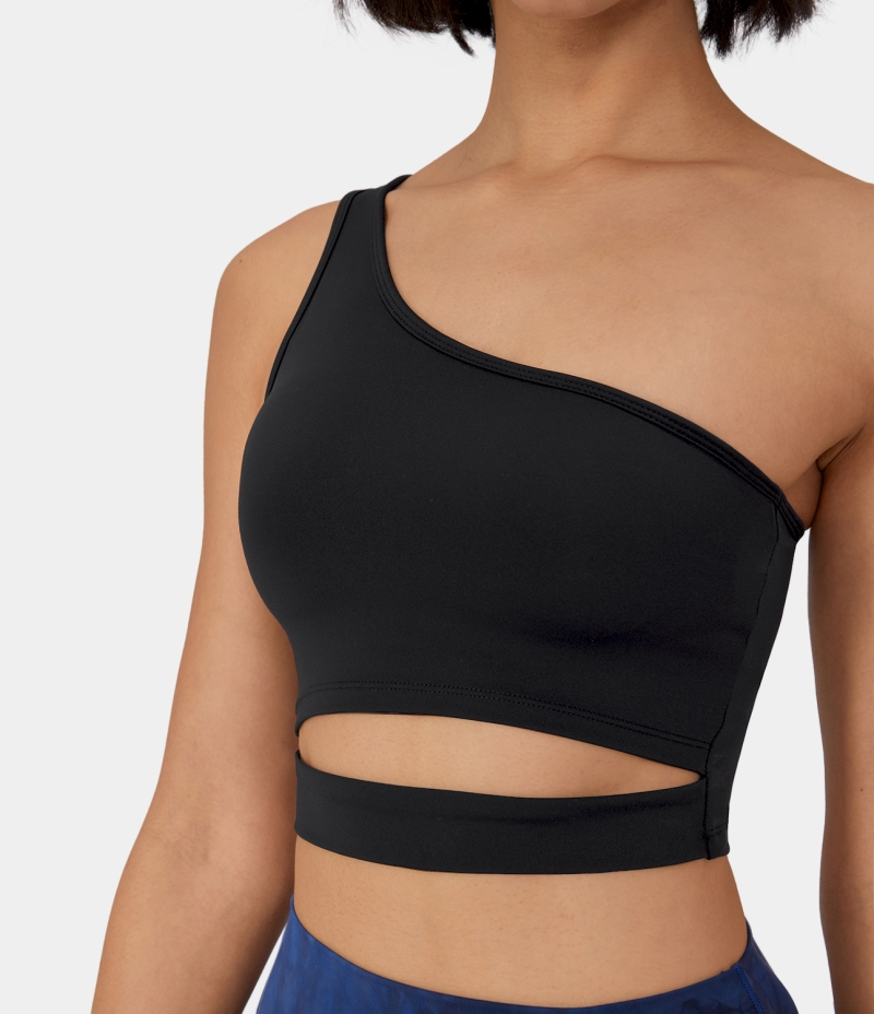 :: Halara Low Support One Shoulder Cut Out Yoga Sports Bra Women's Tops Black | RIBAFXJ-56