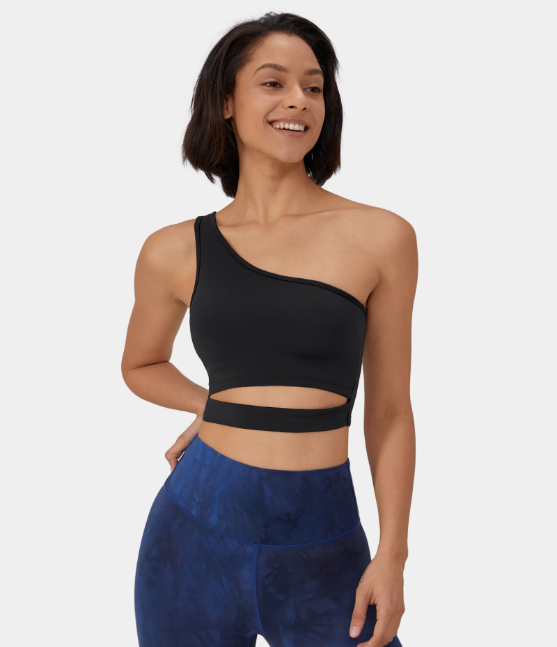 Halara Low Support One Shoulder Cut Out Yoga Sports Bra Women's Tops Black | RIBAFXJ-56