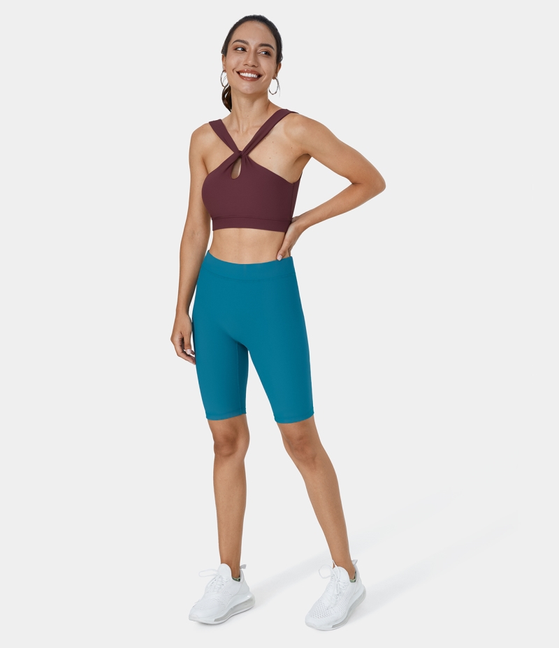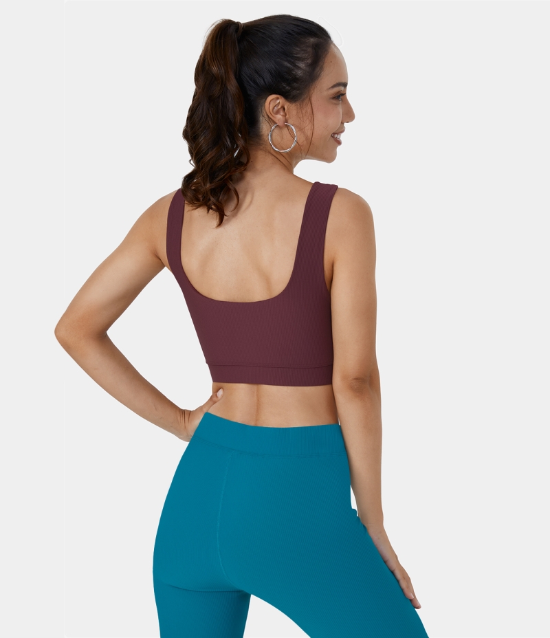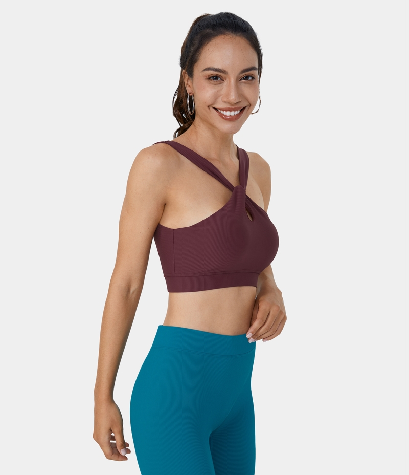 :: Halara Low Support Ribbed Knit Twisted Cut Out Yoga Sports Bra Women's Tops Cabernet | KTUFEDN-38