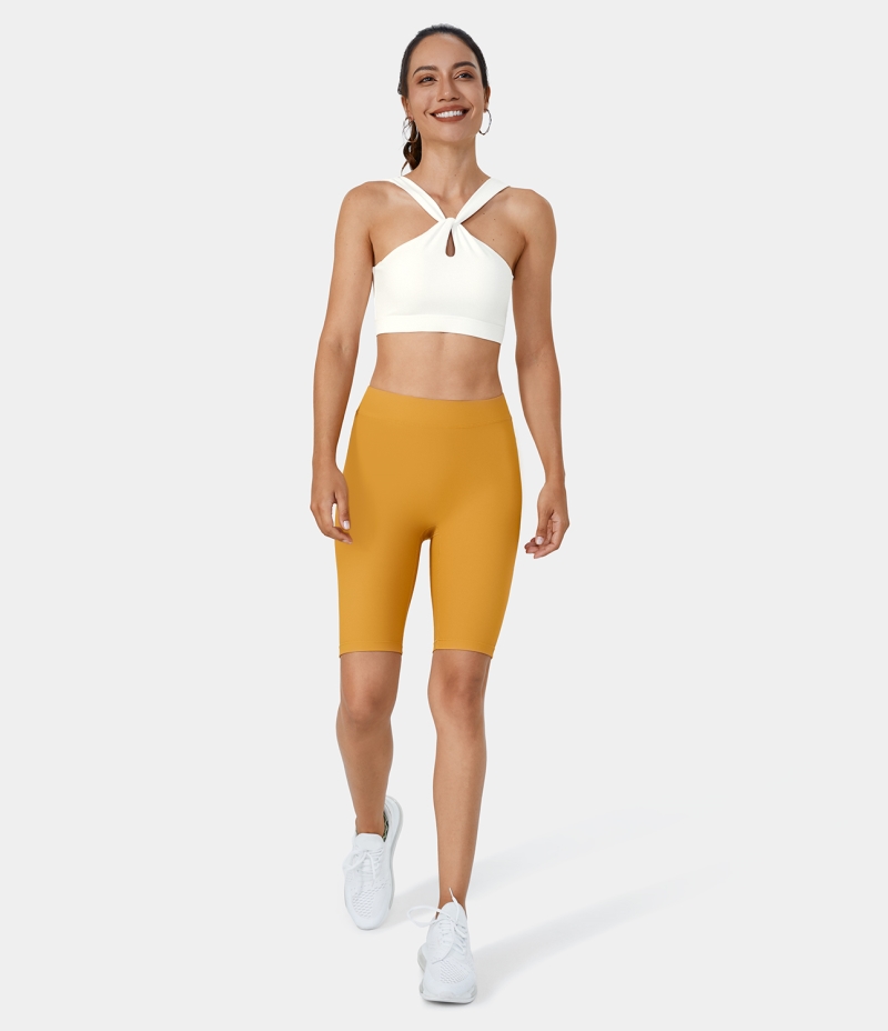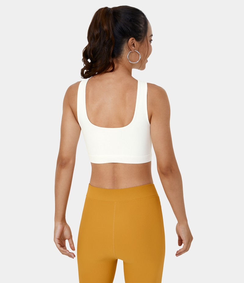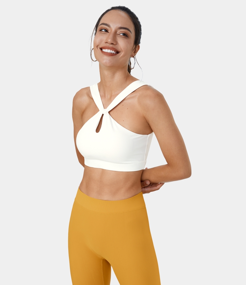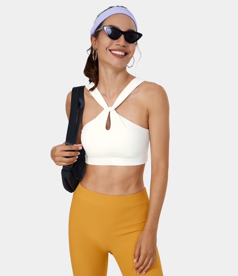 :: Halara Low Support Ribbed Knit Twisted Cut Out Yoga Sports Bra Women's Tops White | APWNGZI-50