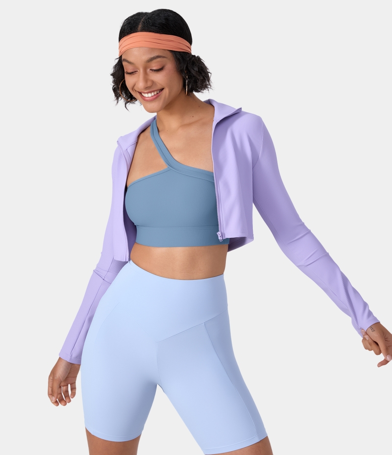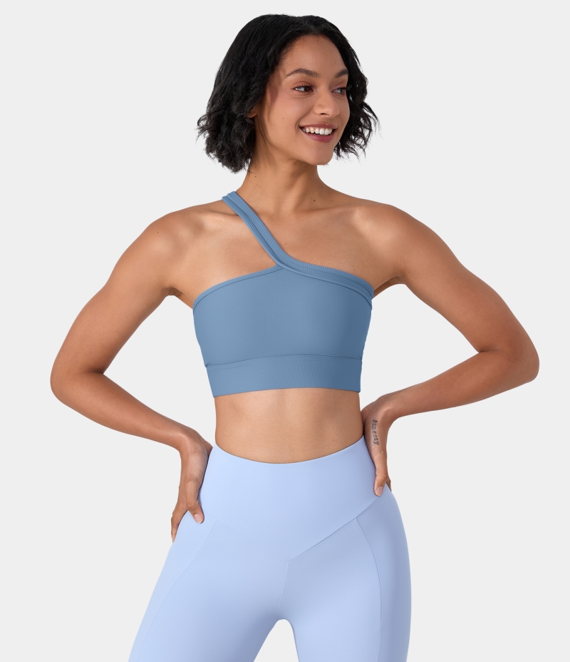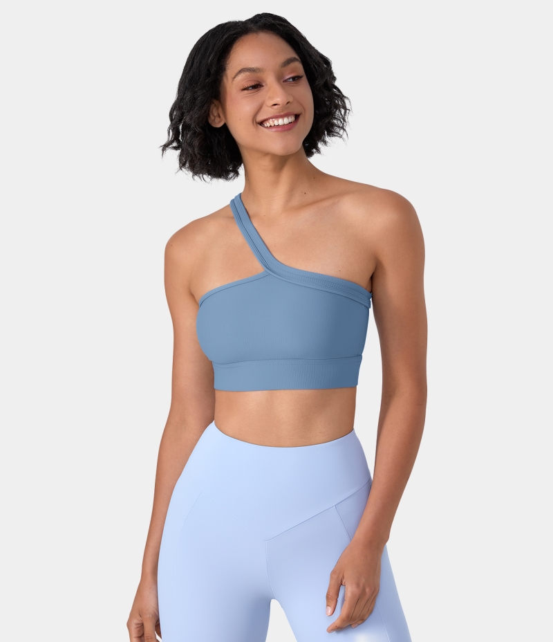 :: Halara Low Support Single Strap Ribbed Yoga Sports Bra Women's Tops Ashleigh Blue | NQXWMIZ-86