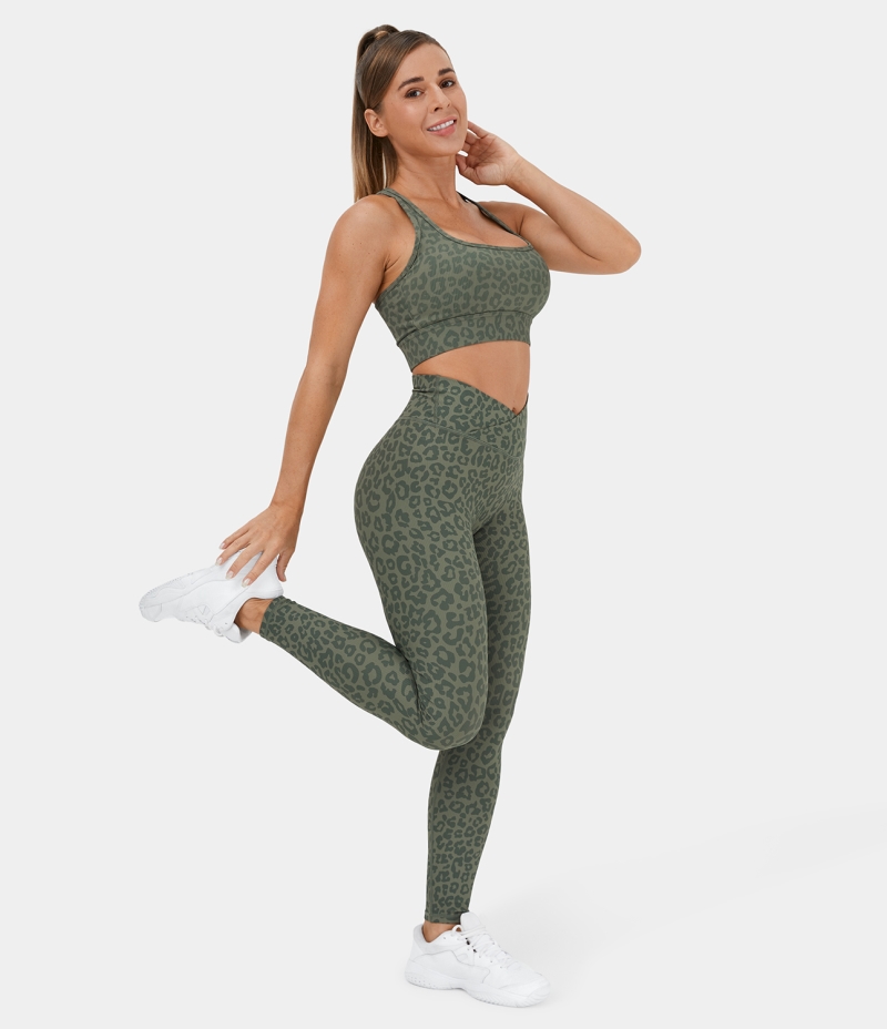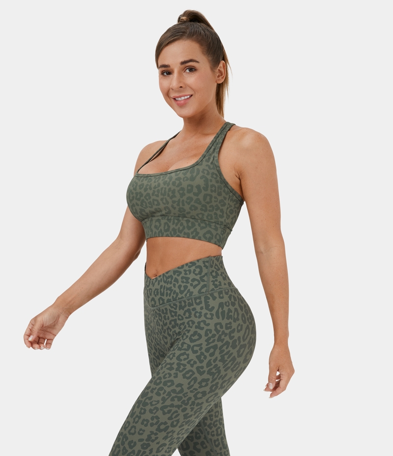 :: Halara Low Support Square Neck Racerback Animal Print Yoga Sports Bra Women's Tops Leopard Green | FYNQWSD-04