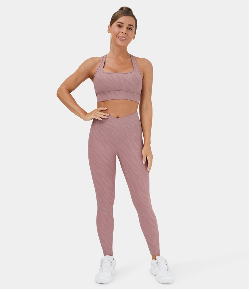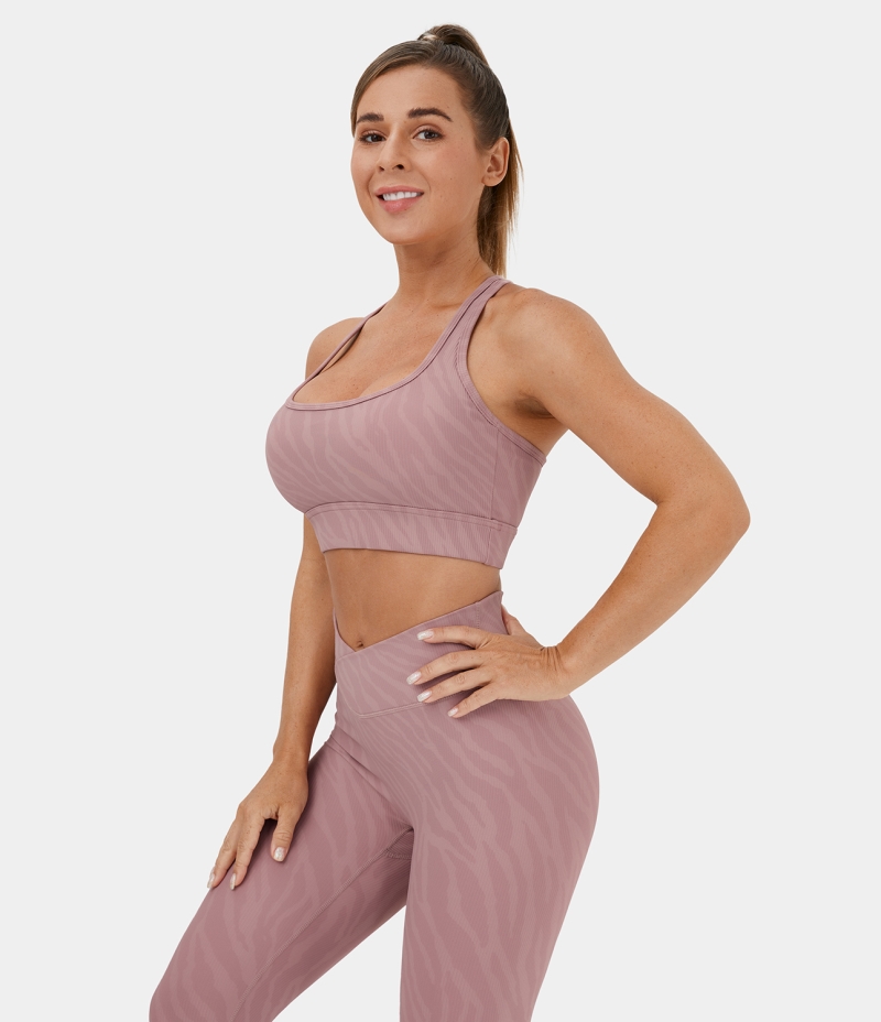 :: Halara Low Support Square Neck Racerback Animal Print Yoga Sports Bra Women's Tops Pink Zebra Stripe | ILDYJXP-94