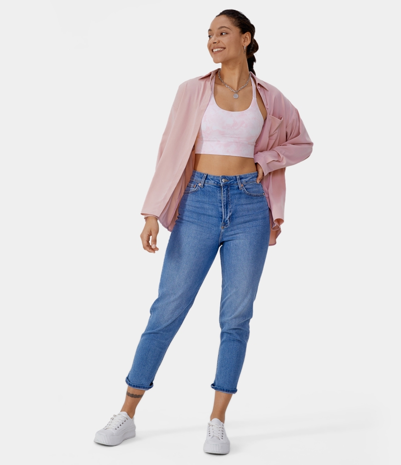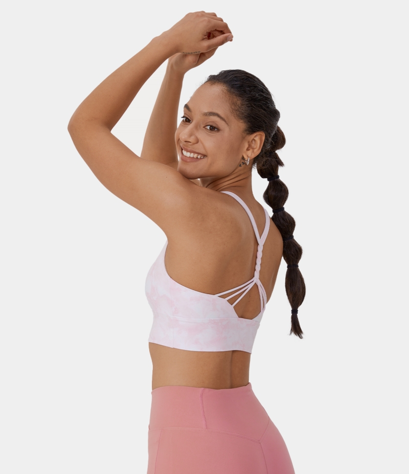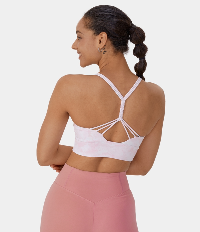 :: Halara Low Support Tie Dye Backless Crisscross Yoga Sports Bra Women's Tops Tie-dye Rosebud | YESDUJW-28