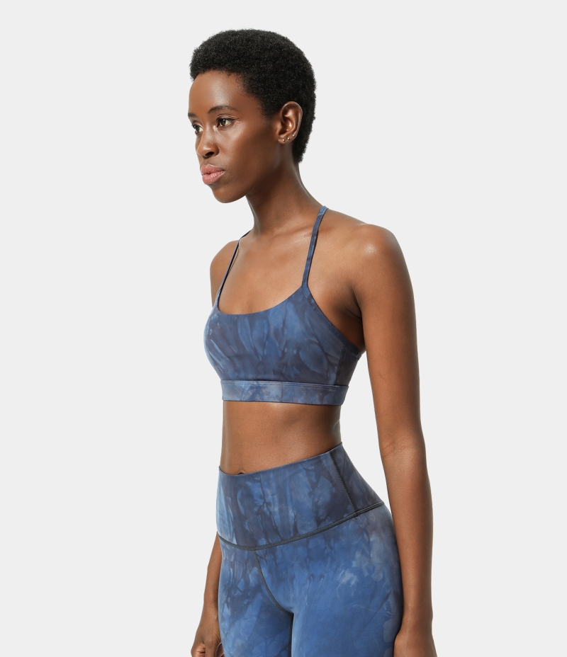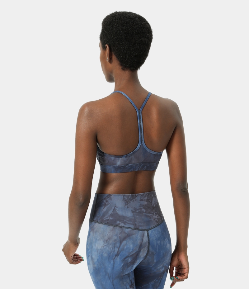 :: Halara Low Support Tie Dye Backless Y Back Yoga Sports Bra Women's Tops Tie-dye Blue | ZFMQARG-91