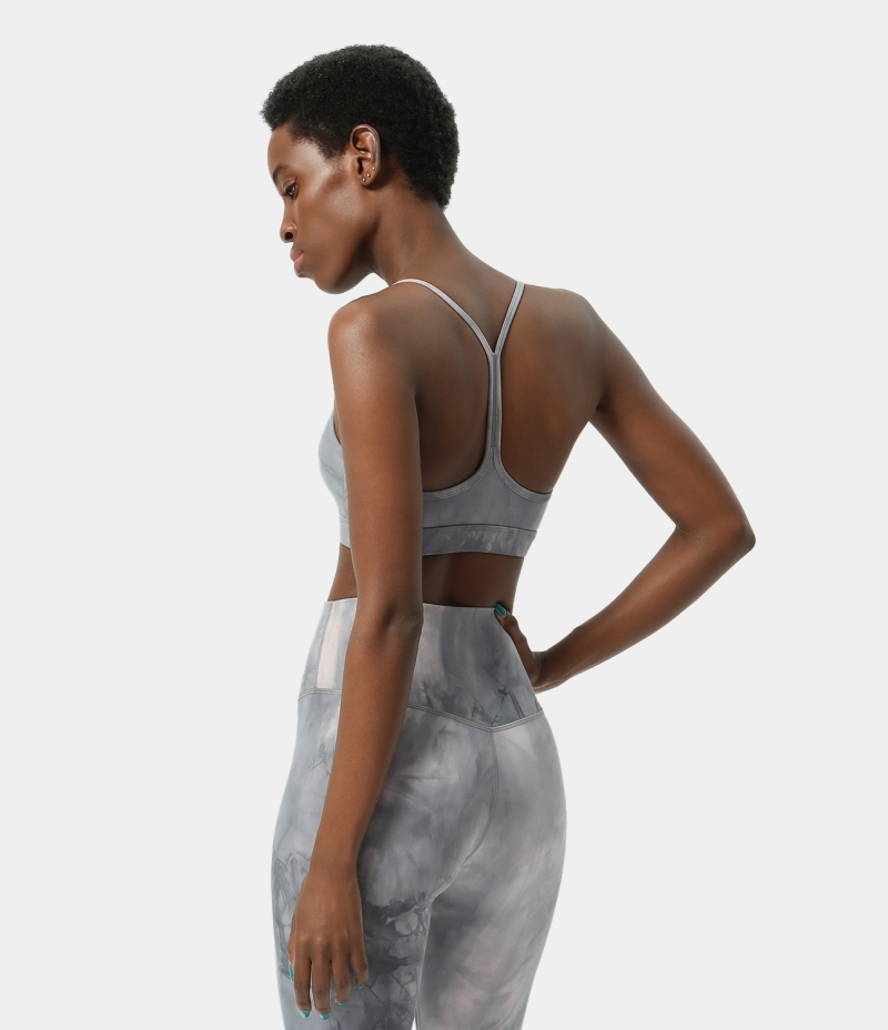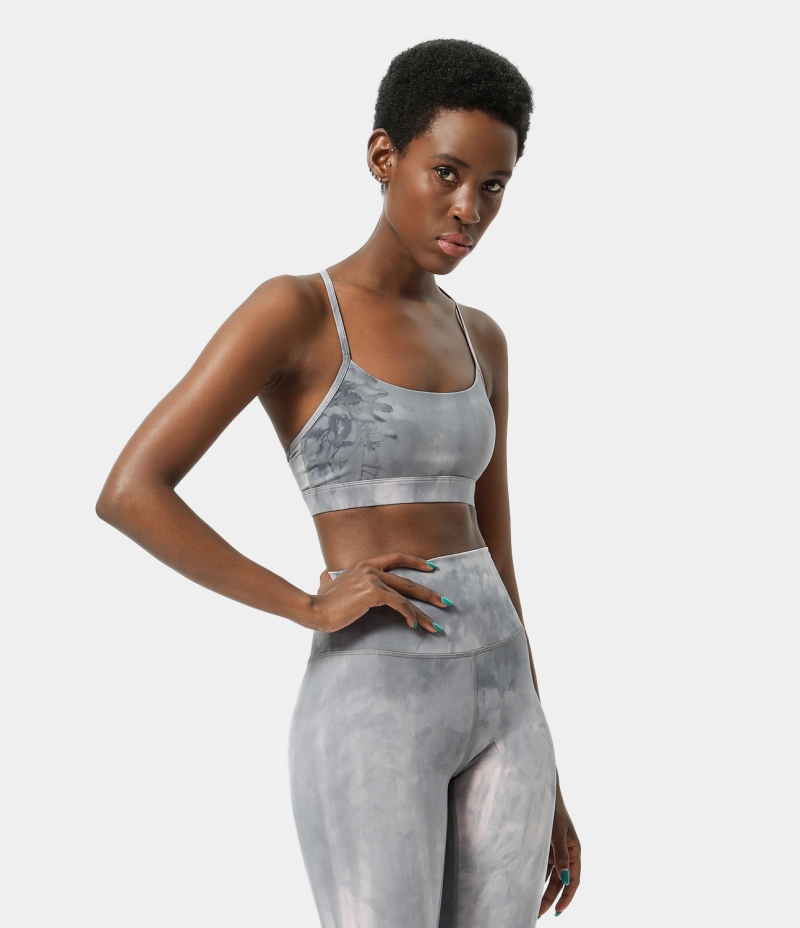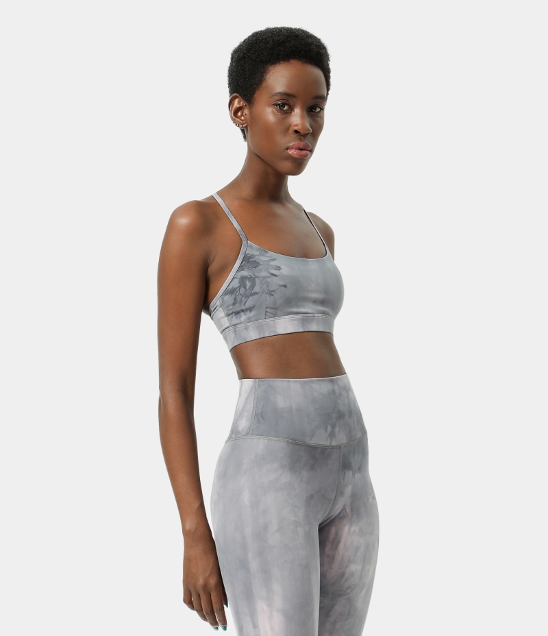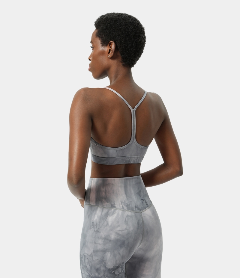 :: Halara Low Support Tie Dye Backless Y Back Yoga Sports Bra Women's Tops Tie-dye Grey | XWYBAZT-95