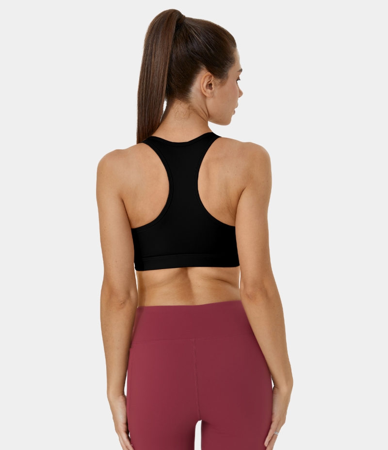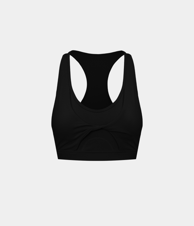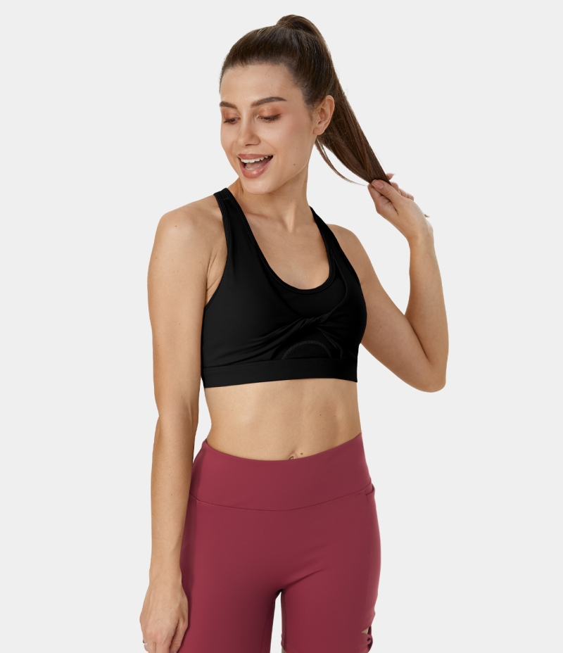 :: Halara Low Support Twisted Racerback Yoga Sports Bra Women's Tops Black | VQXSCKJ-95