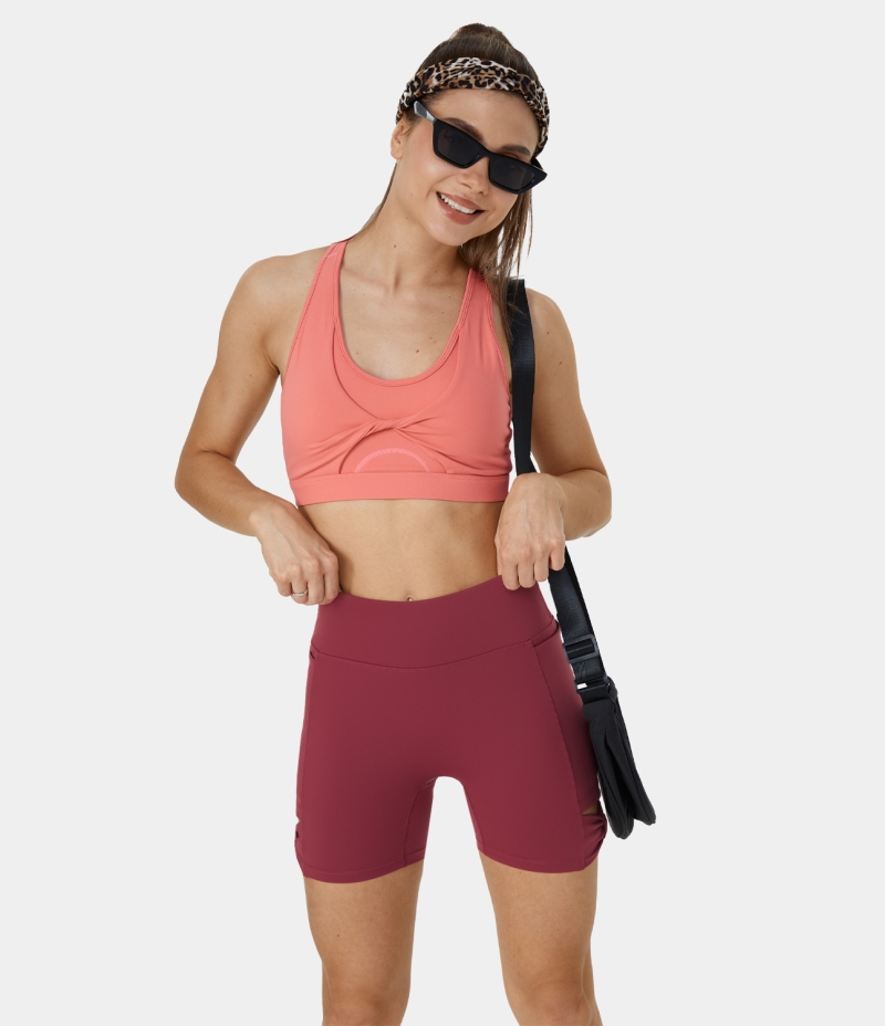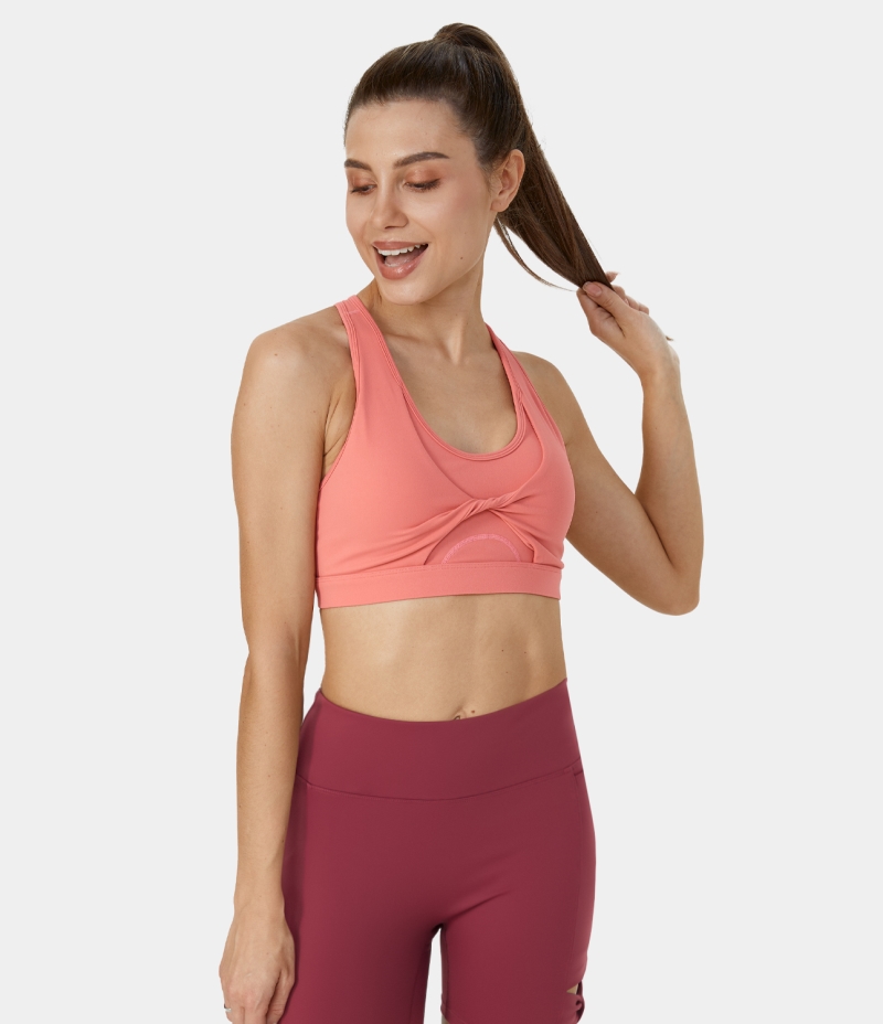 :: Halara Low Support Twisted Racerback Yoga Sports Bra Women's Tops Coral | EUBZASG-64