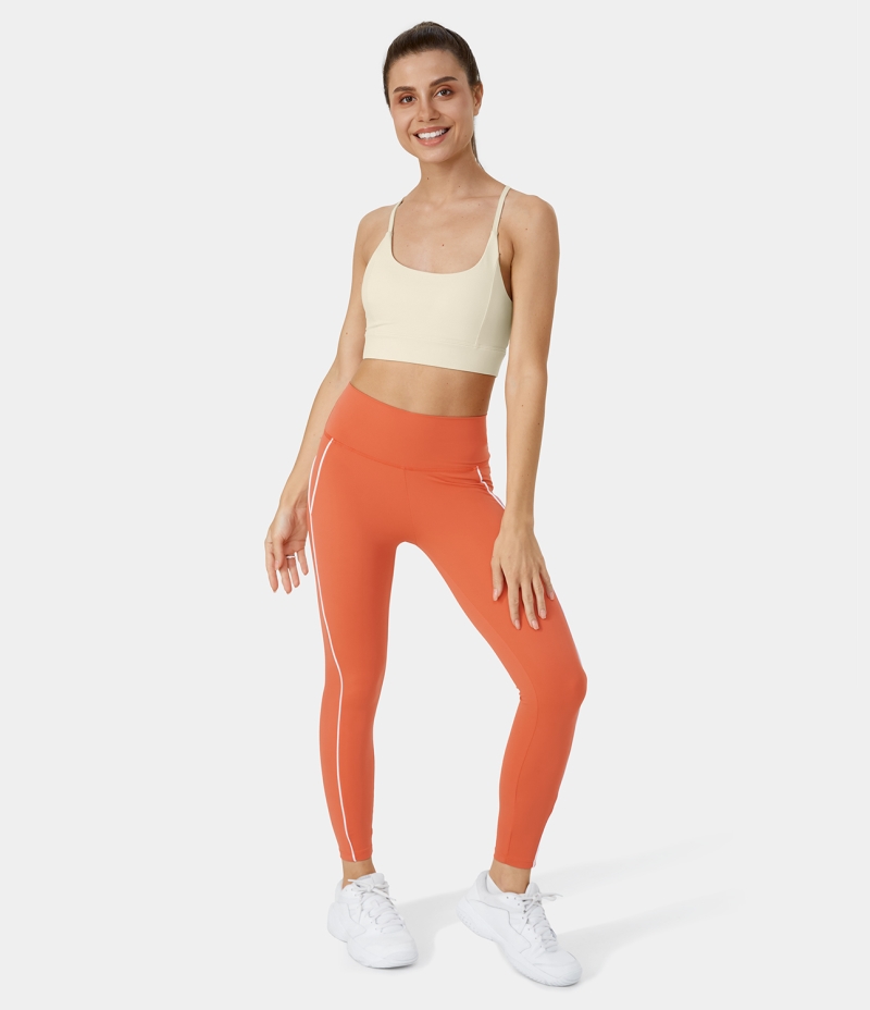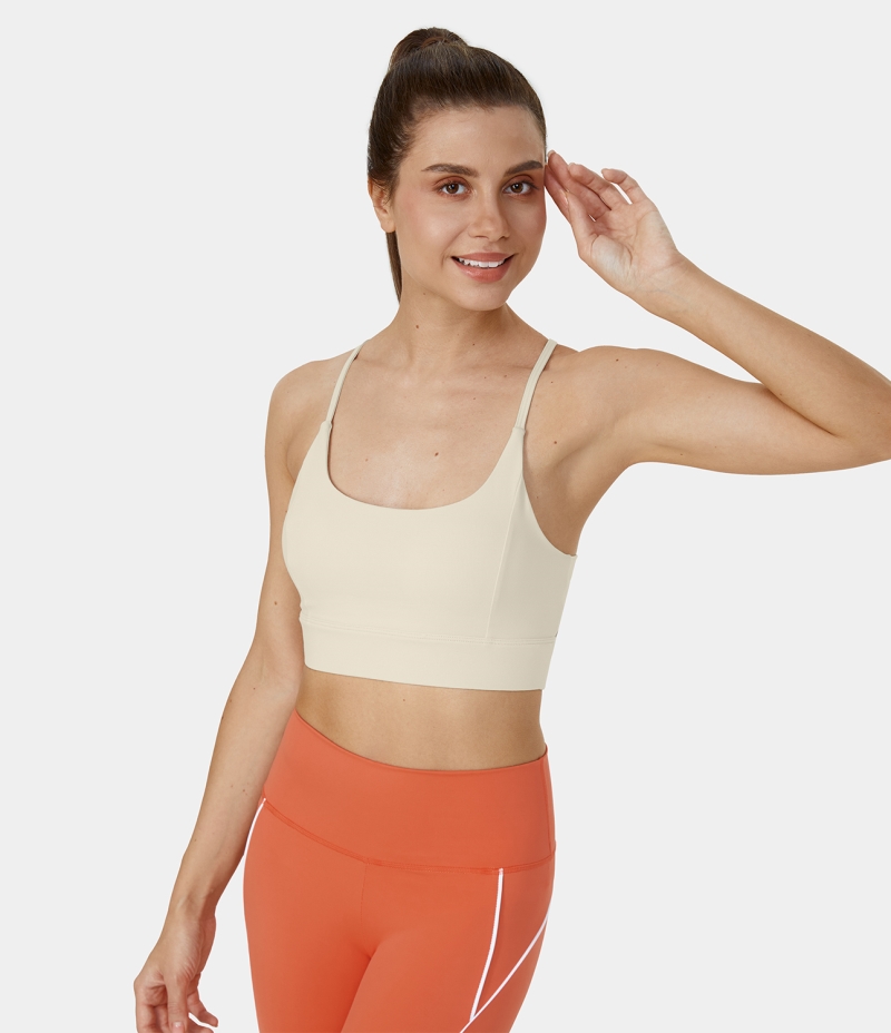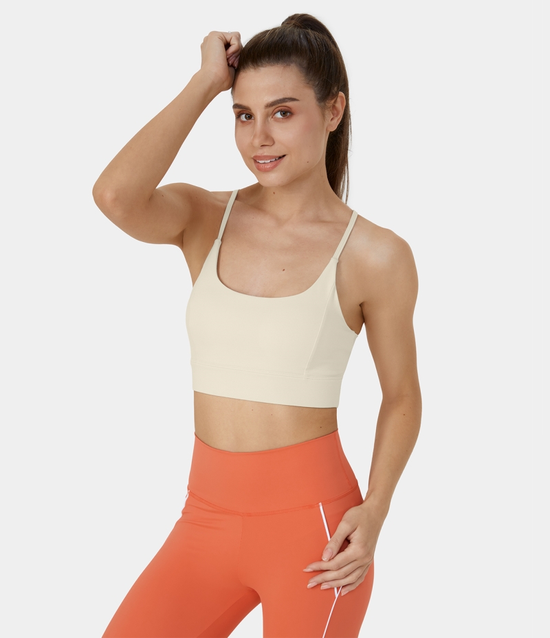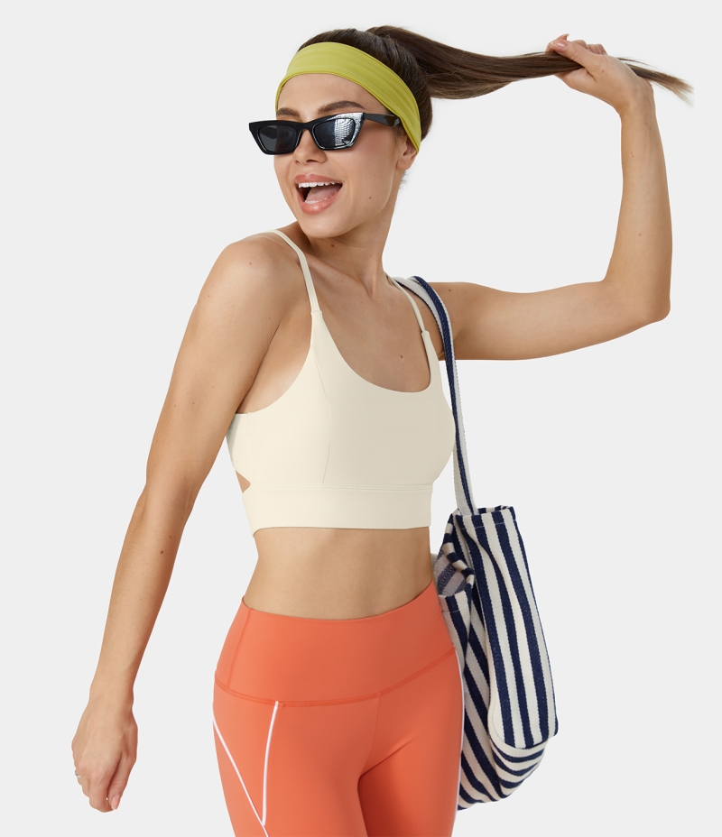 :: Halara Low Support U Neck Backless Ruched Cut Out Yoga Sports Bra Women's Tops Baby's Breath | LJCOHZX-32
