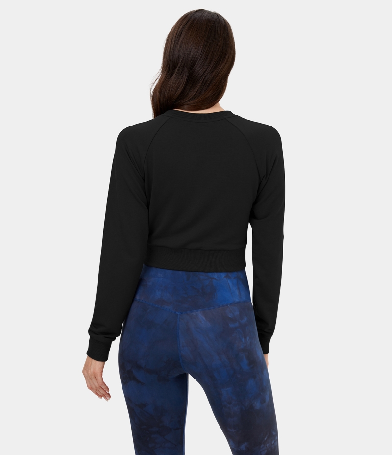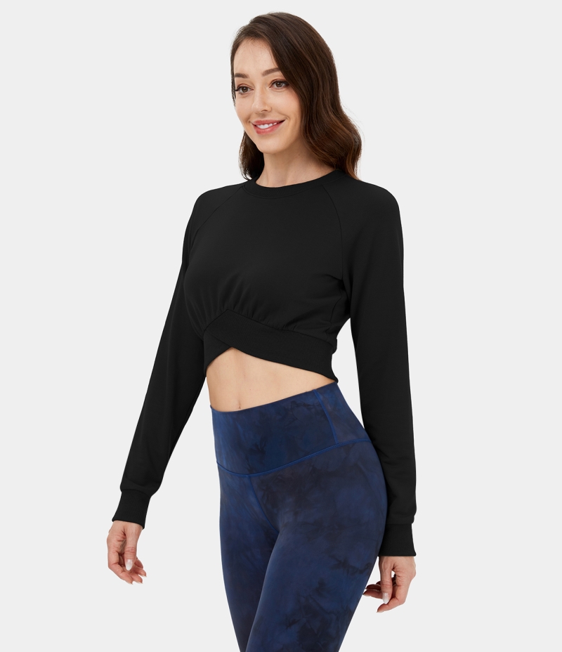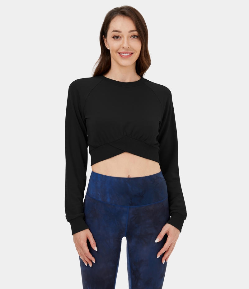 Halara Marshmallogy Crossover Hem Cropped Fleece Casual Sports Sweatshirt Women's Tops Black | ITLGOSB-86