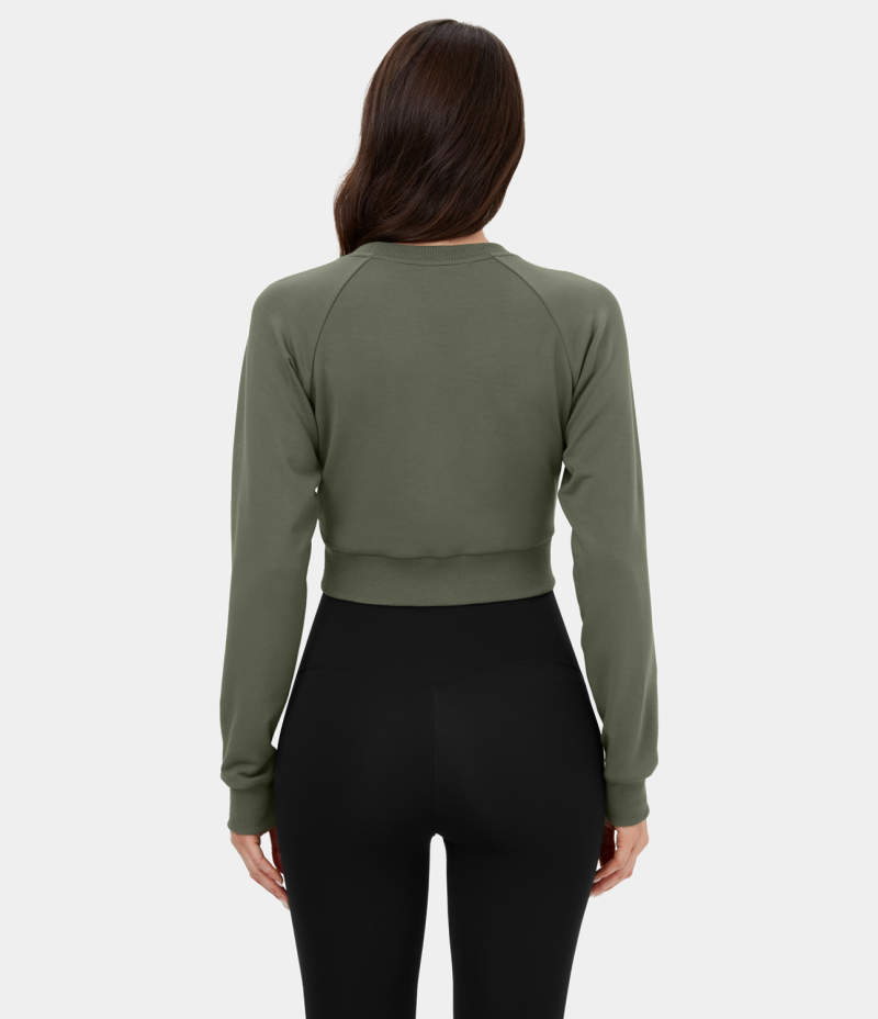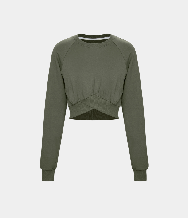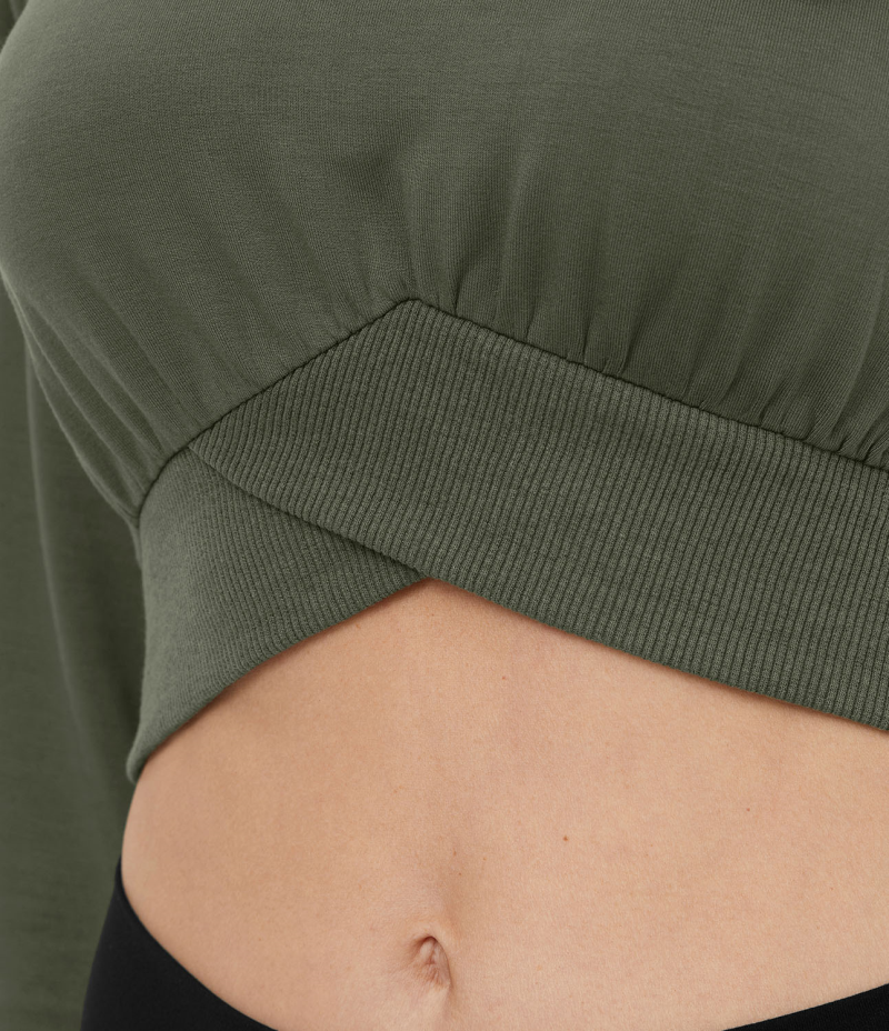 :: Halara Marshmallogy Crossover Hem Cropped Fleece Casual Sports Sweatshirt Women's Tops Winter Moss | YHFXQWK-06