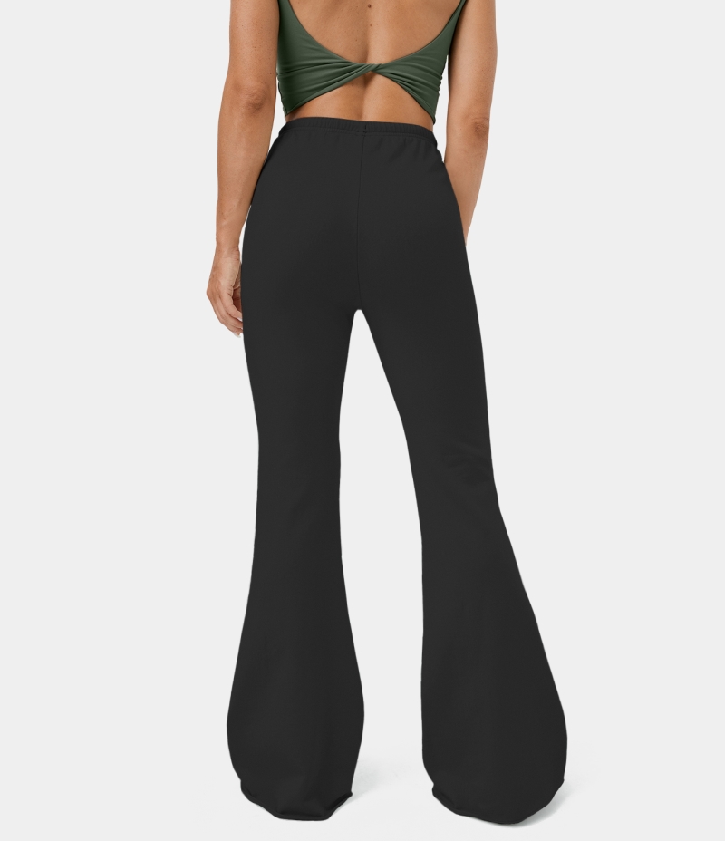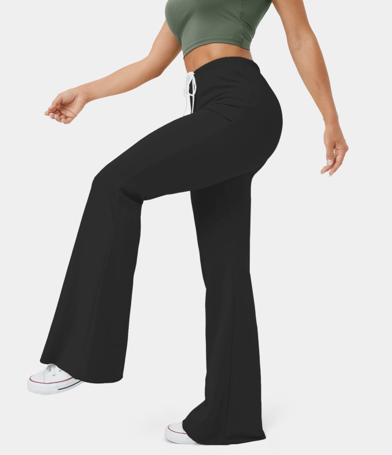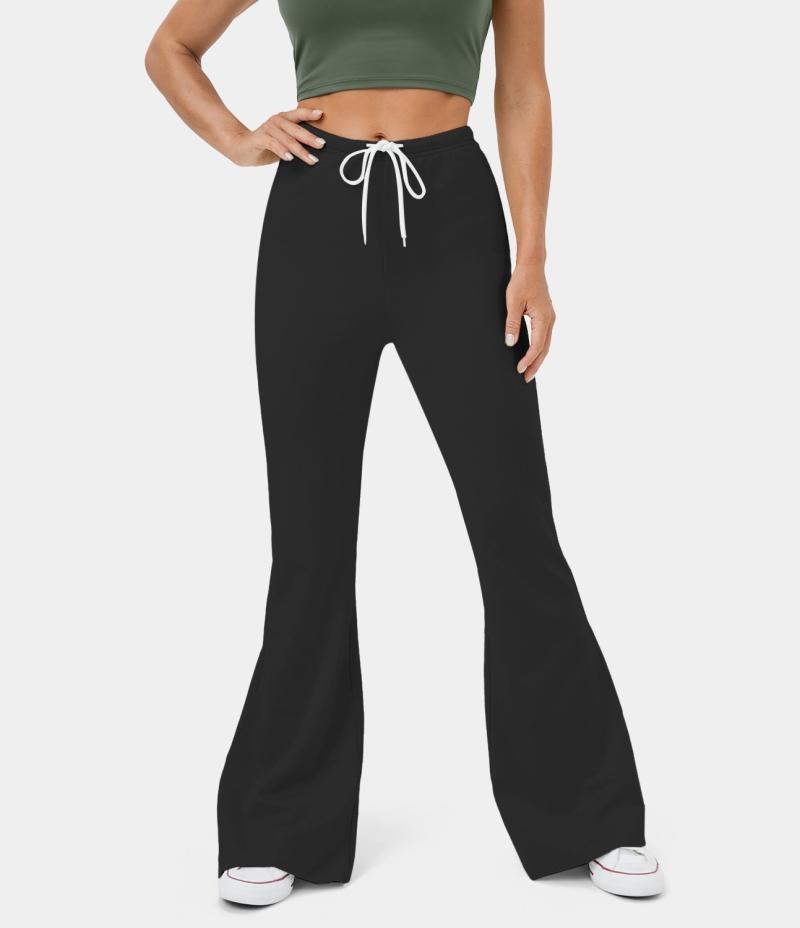 Halara Marshmallogy High Waisted Drawstring Super Flare Casual Fleece Women's Pants Black | 270469-ZMW