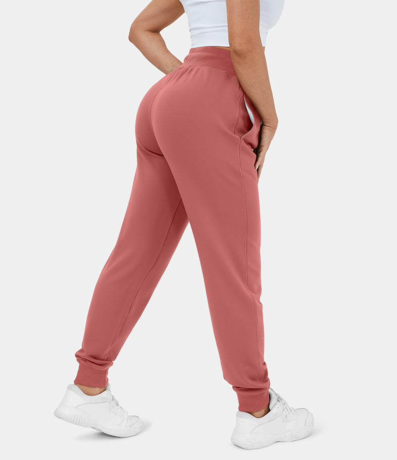 Halara Marshmallogy High Waisted Ribbed Drawstring Side Pocket Casual Fleece Women's Jogger Brick Red | 397651-KAM