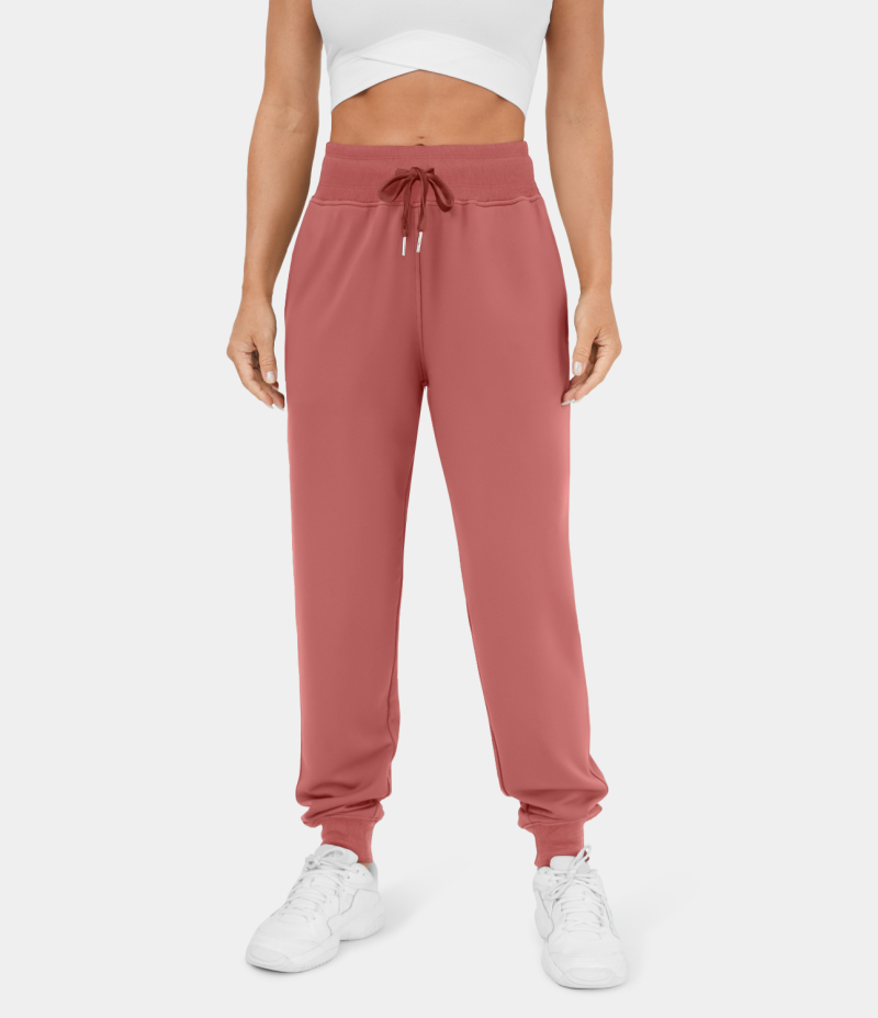:: Halara Marshmallogy High Waisted Ribbed Drawstring Side Pocket Casual Fleece Women's Jogger Brick Red | 397651-KAM
