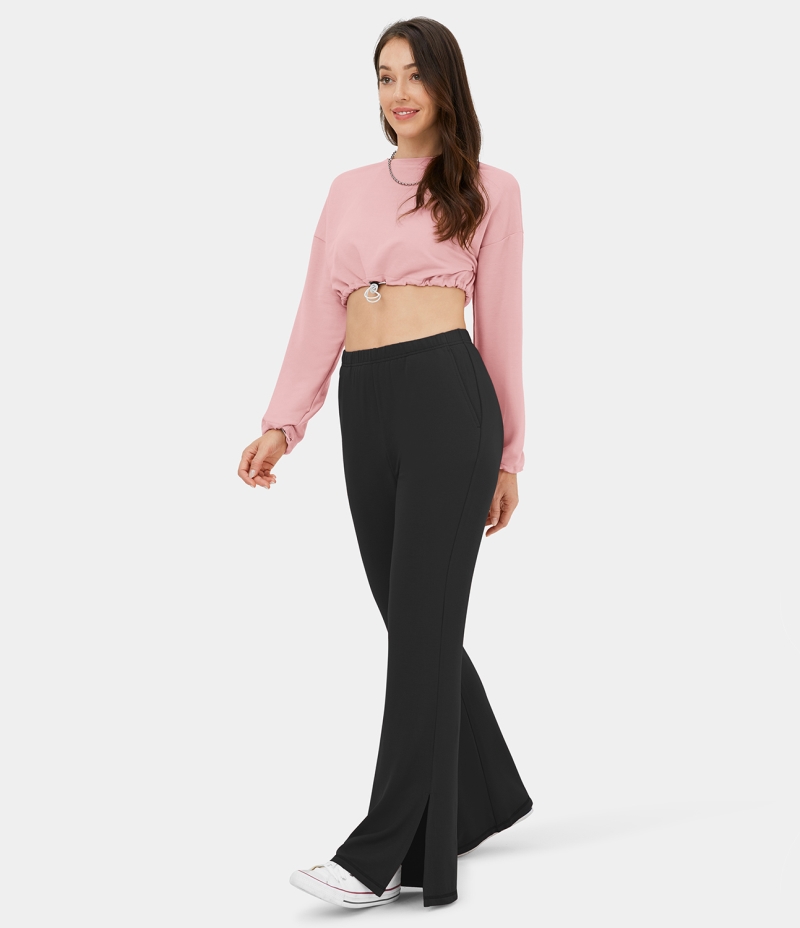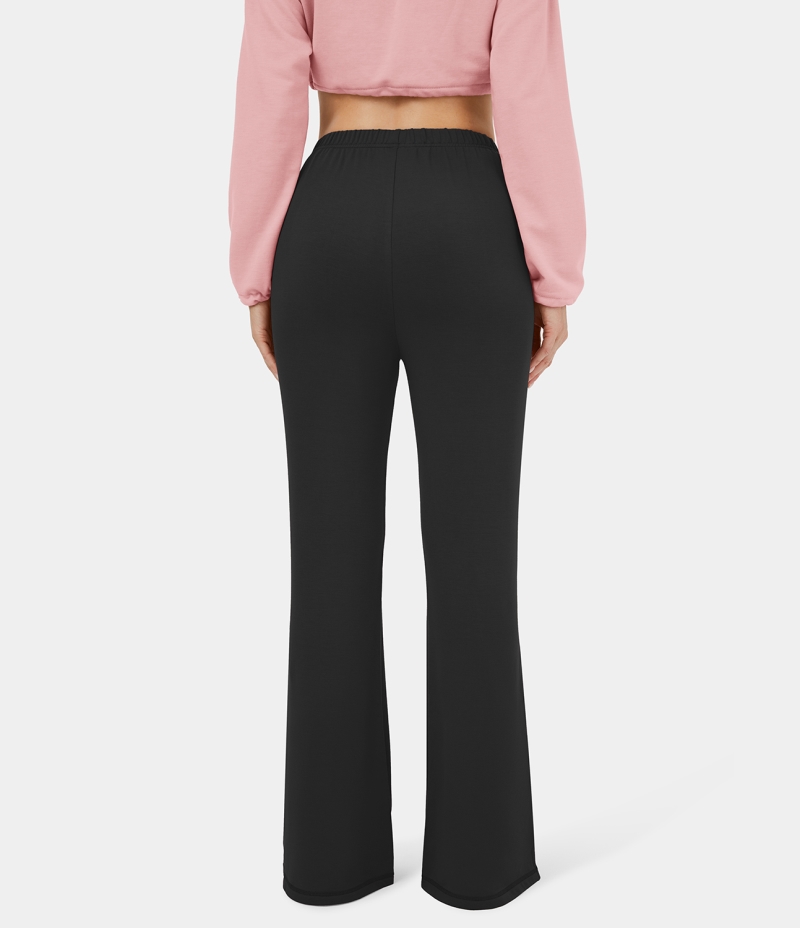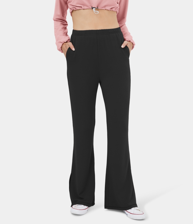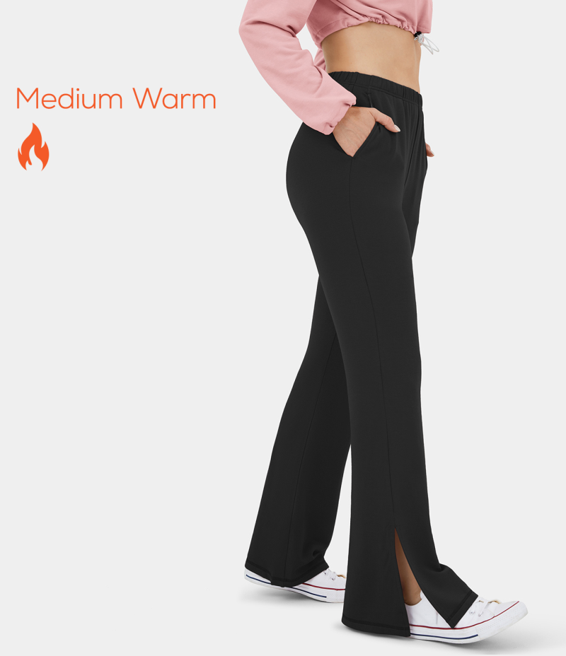Halara Marshmallogy High Waisted Side Pocket Split Fleece Casual Flare Women's Pants Black | 146920-DQT
