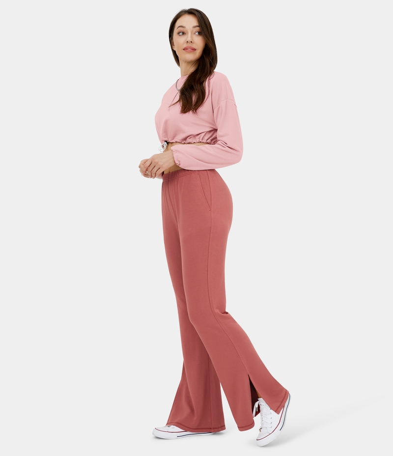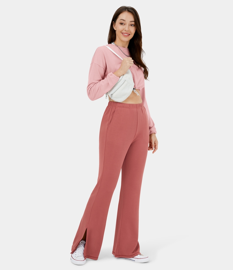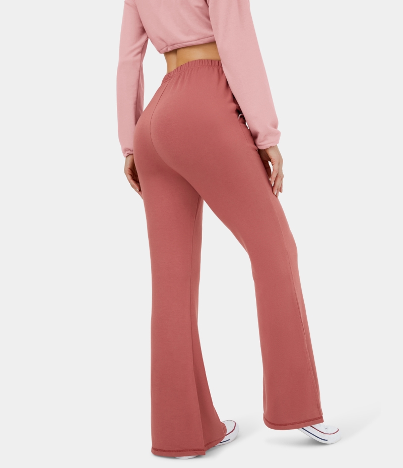 Halara Marshmallogy High Waisted Side Pocket Split Fleece Casual Flare Women's Pants Brick Red | 106297-LUF