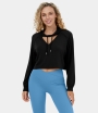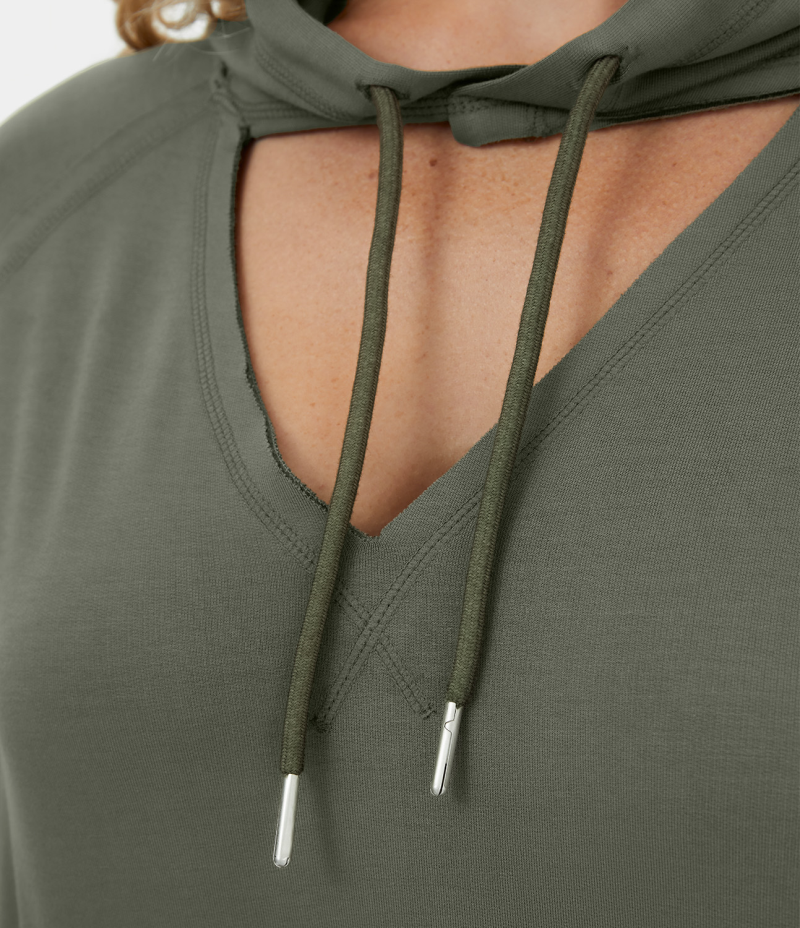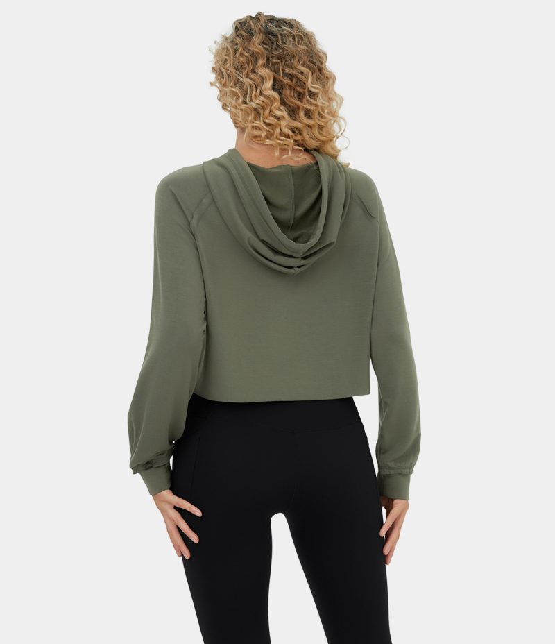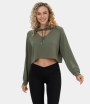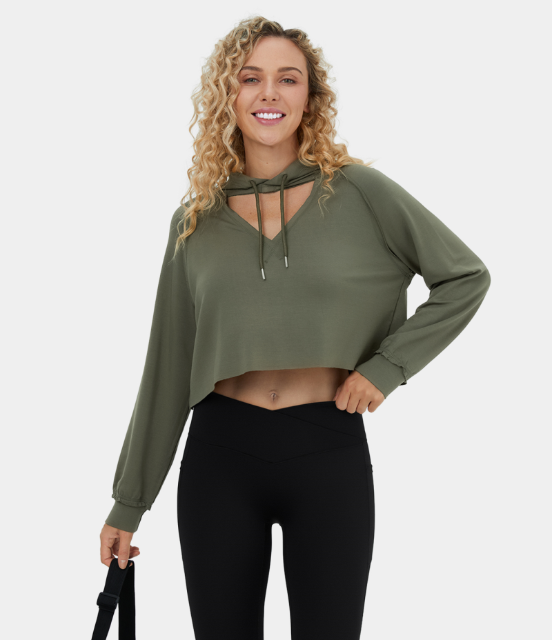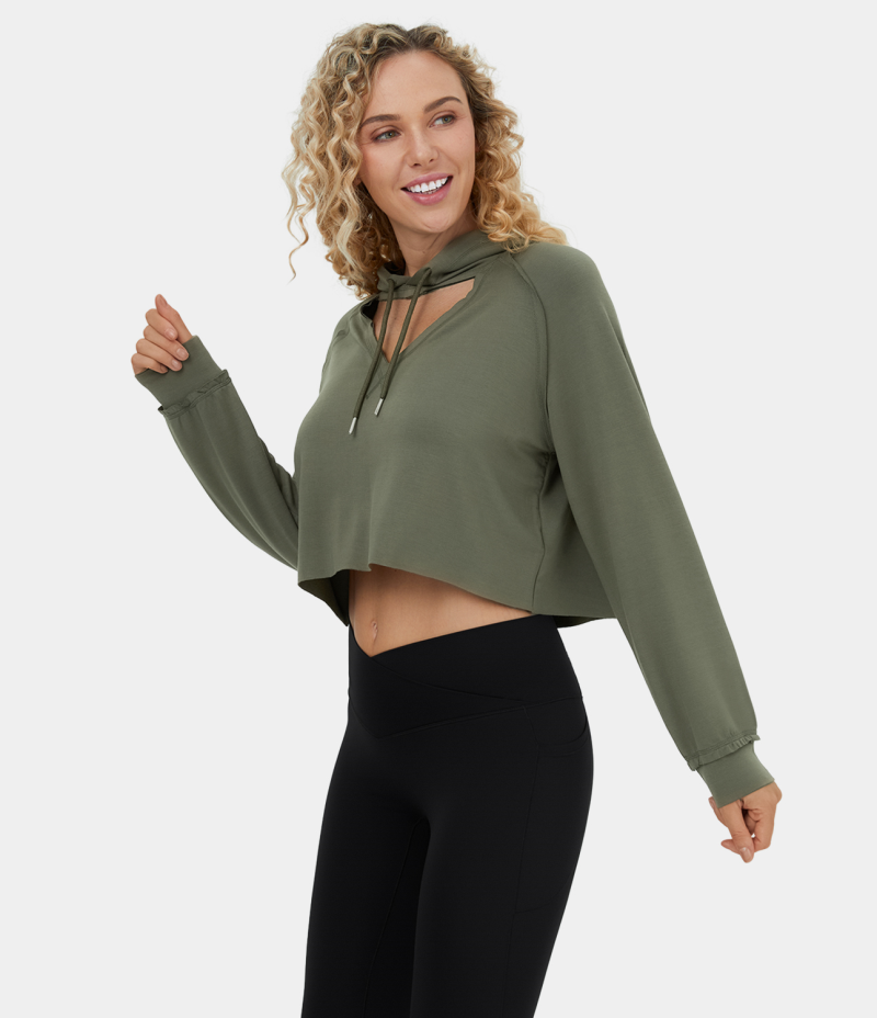 Halara Marshmallogy Hooded Drawstring Cut Out Cropped Casual Hoodie Sweatshirt Women's Tops Winter Moss | KRQTPHN-89