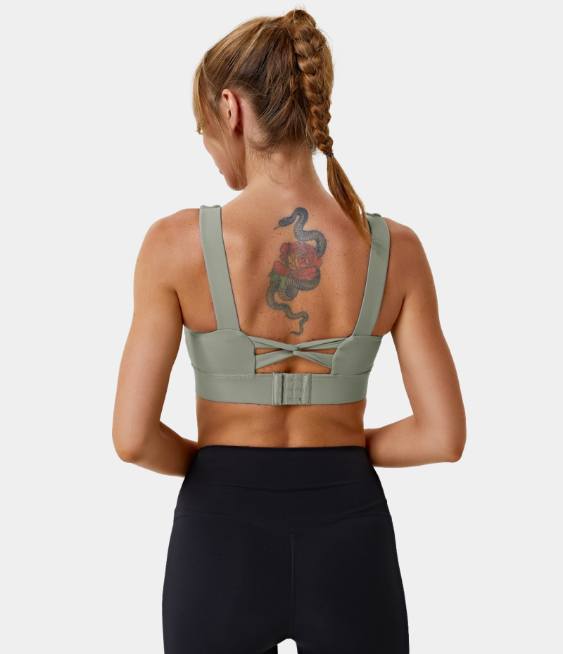 :: Halara Medium Support Back Twisted Adjustable Hook Running Sports Bra Women's Tops Deep Olive | SVTMIYD-50