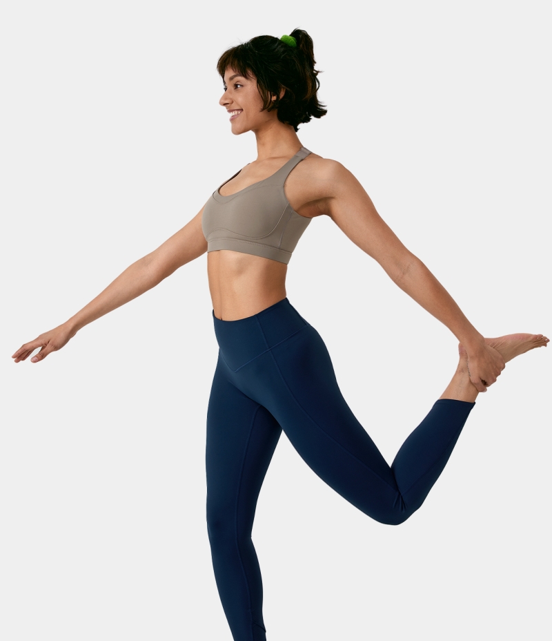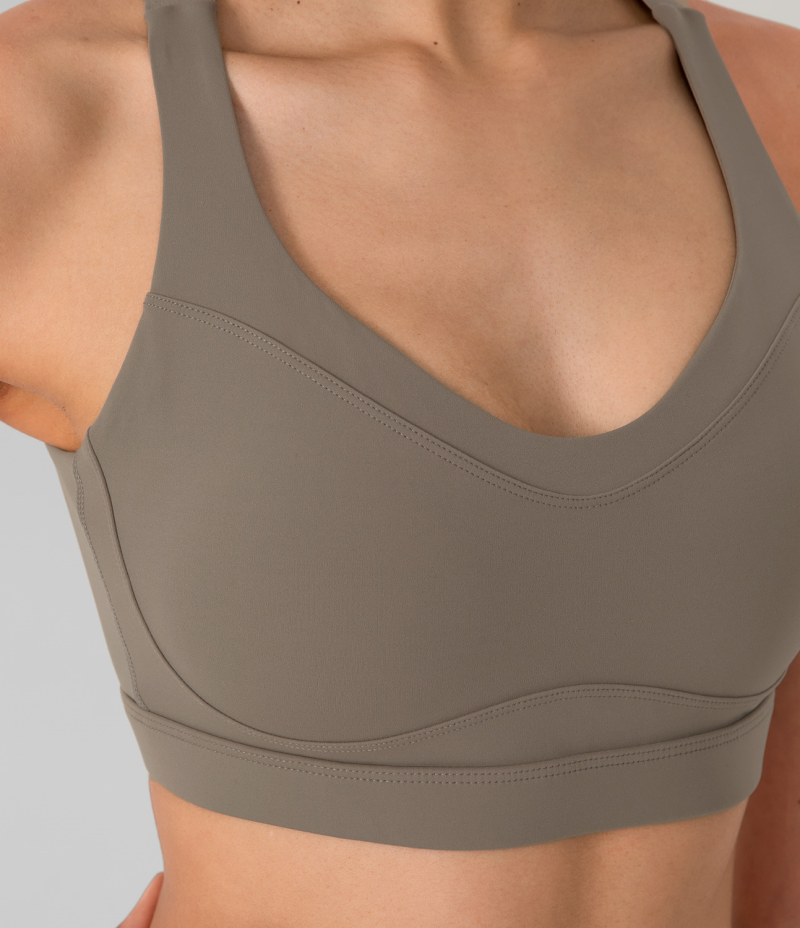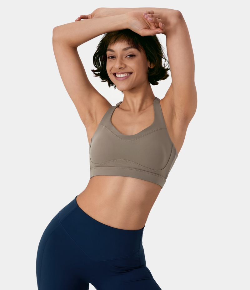 :: Halara Medium Support Backless Crisscross Adjustable Straps Gym Sports Bra Women's Tops Deep Taupe | HCLVUDN-84