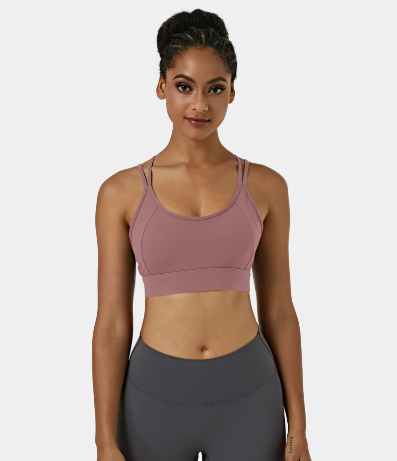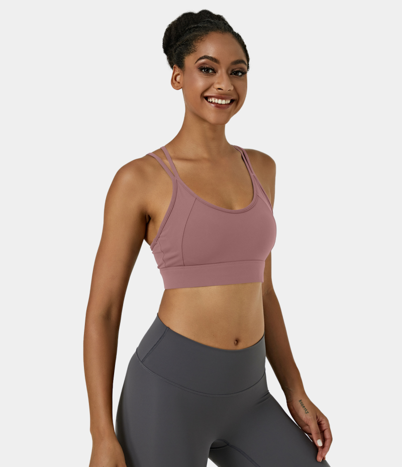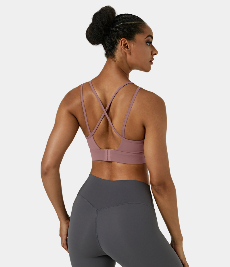:: Halara Medium Support Backless Crisscross Strappy Adjustable Hook Sports Bra Women's Tops Nostalgia Rose | QXOHEZY-45