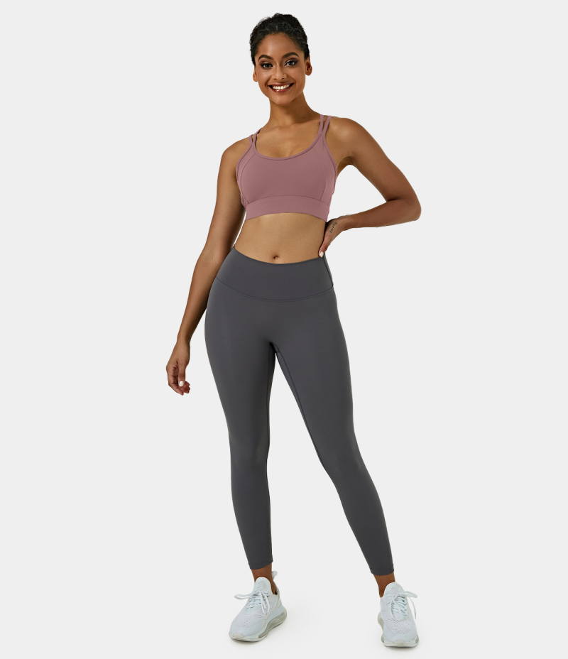 Halara Medium Support Backless Crisscross Strappy Adjustable Hook Sports Bra Women's Tops Nostalgia Rose | QXOHEZY-45