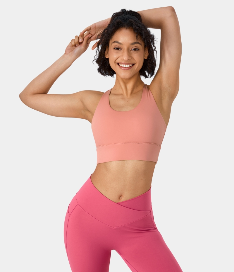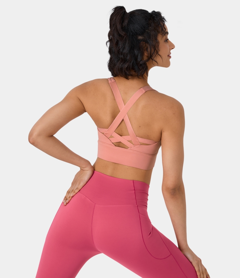 :: Halara Medium Support Backless Crisscross Training Sports Bra Women's Tops Crabapple | PACZBHN-87