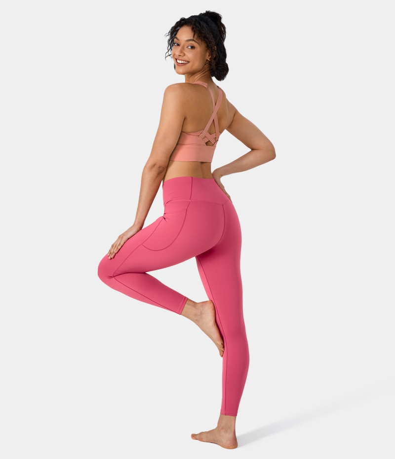 Halara Medium Support Backless Crisscross Training Sports Bra Women's Tops Crabapple | PACZBHN-87
