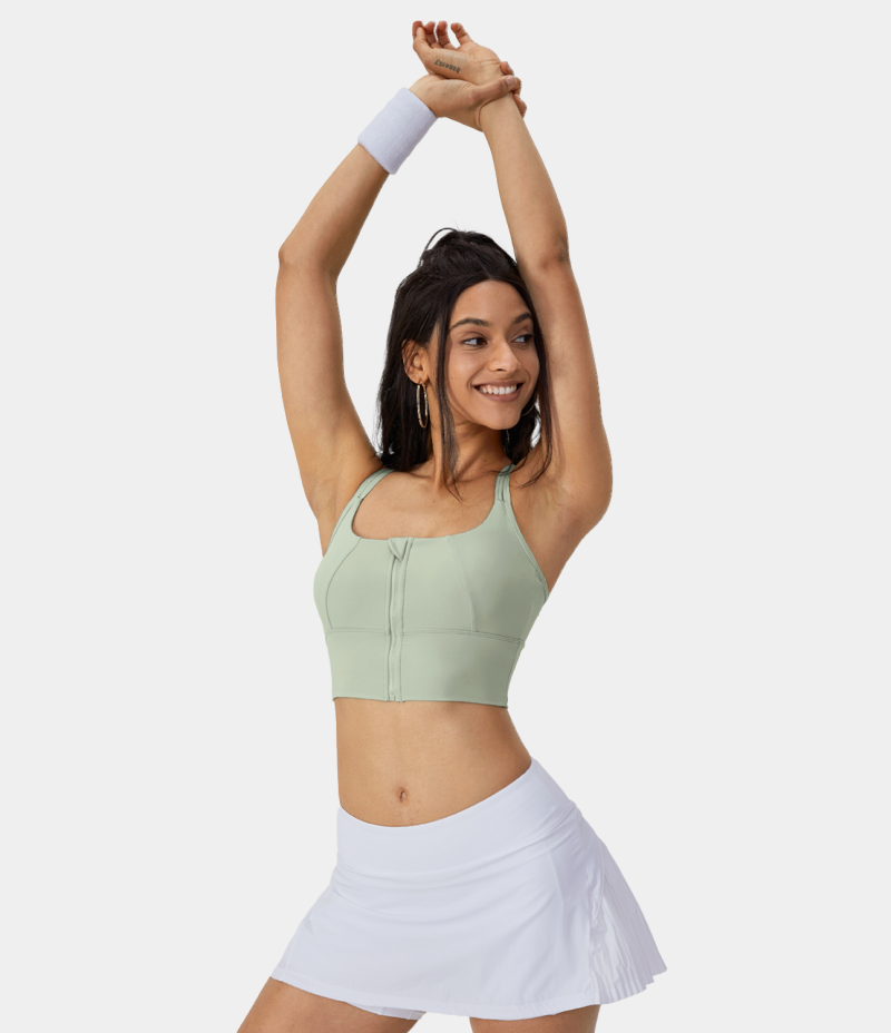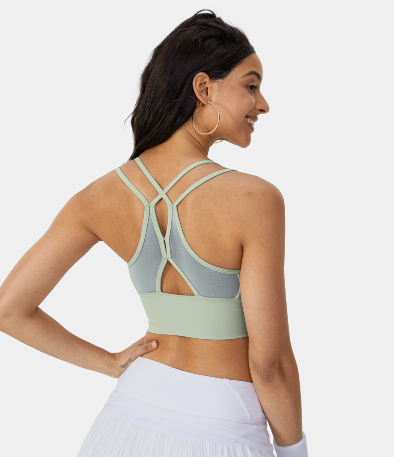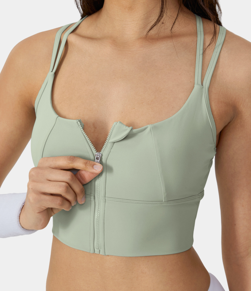 :: Halara Medium Support Contrast Mesh Double Straps Zip Front Sports Bra Women's Tops Mist | YGRNKWX-37