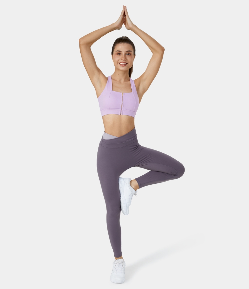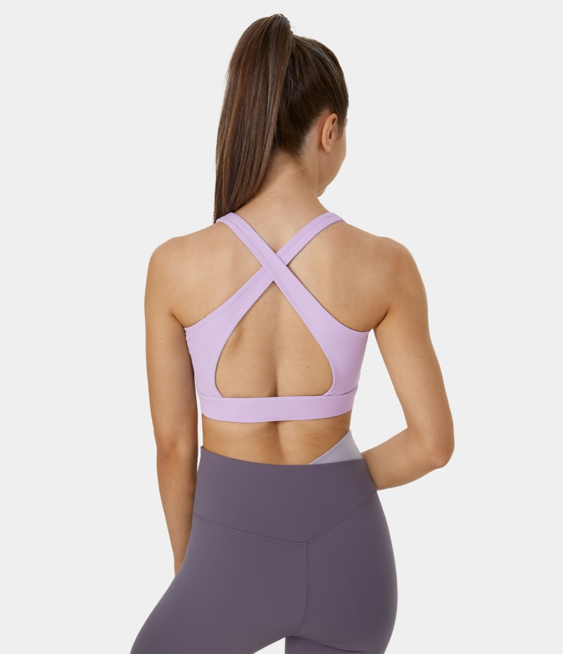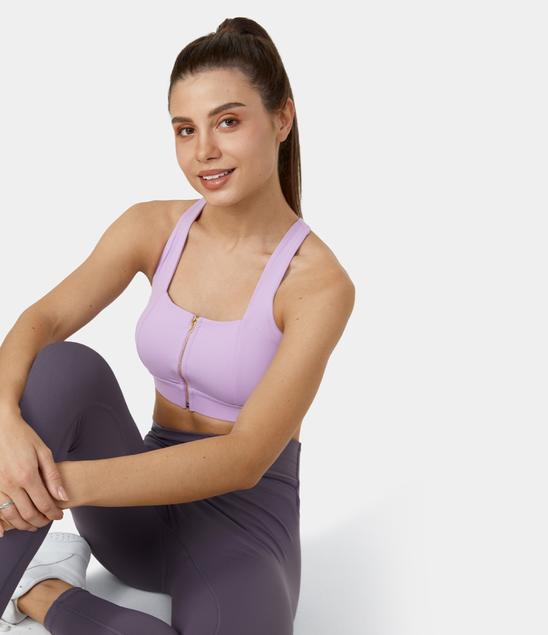 Halara Medium Support Zip Front Backless Crisscross Cut Out Training Sports Bra Women's Tops Orchid Bloom | MUBLSPZ-02