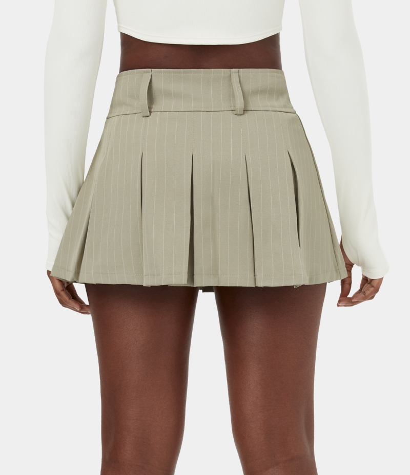 :: Halara Mid Rise 2-in-1 Striped Pleated Mini Casual Women's Skirts Khaki Stripe | 674538-UXC