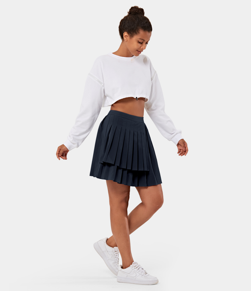 :: Halara Mid Rise Asymmetric Pleated Women's Skirts Dark Blue | 246371-ZUP
