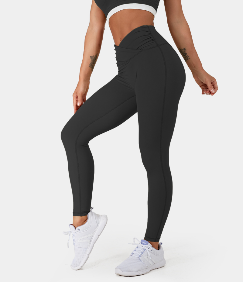 :: Halara Mid Rise Butt Lifting Crossover Ruched Women's Leggings Black | 380175-GBP