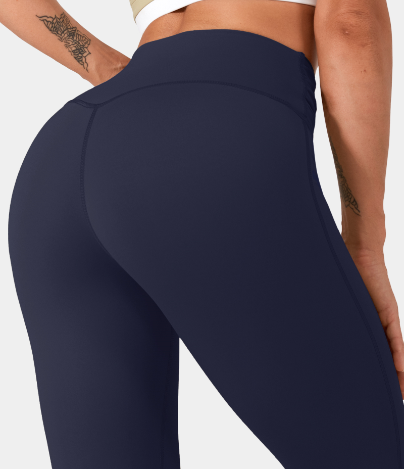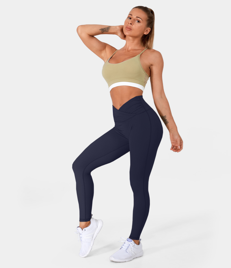 :: Halara Mid Rise Butt Lifting Crossover Ruched Women's Leggings Dark Blue | 673809-SRY