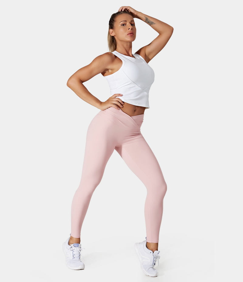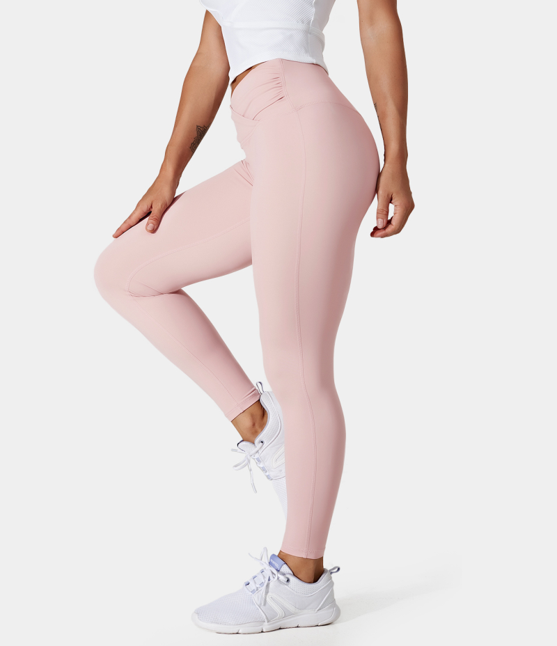 :: Halara Mid Rise Butt Lifting Crossover Ruched Women's Leggings Sheer Rosebud | 254318-ZSJ