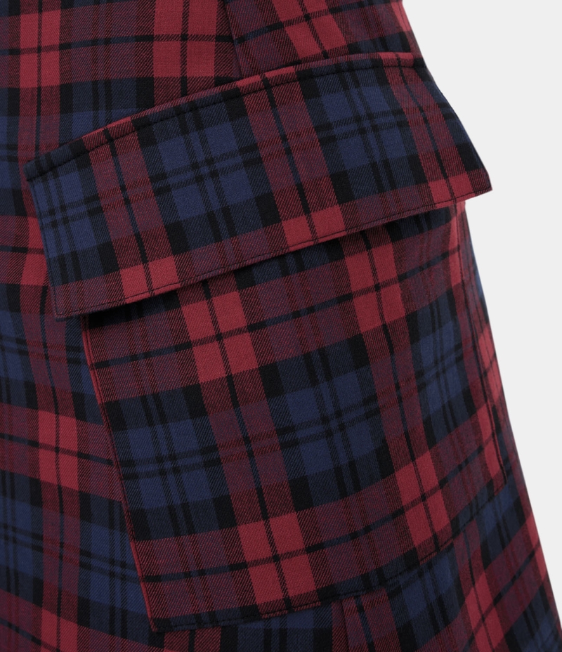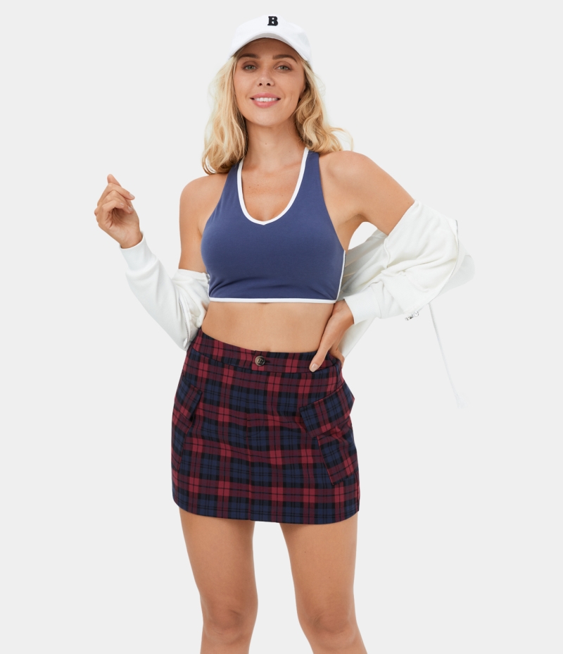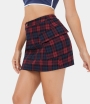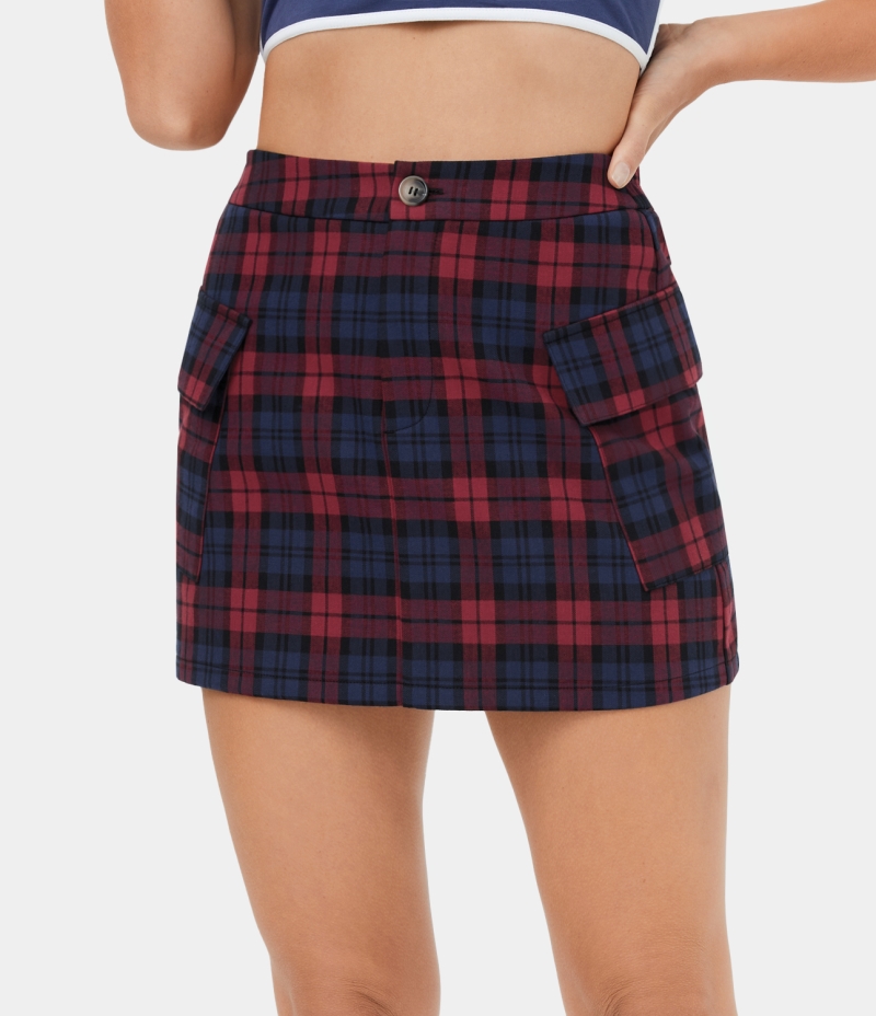 :: Halara Mid Rise Button Zipper Cargo Pocket Plaid Mini Casual Women's Skirts Red Blue Plaid | 091365-NCX