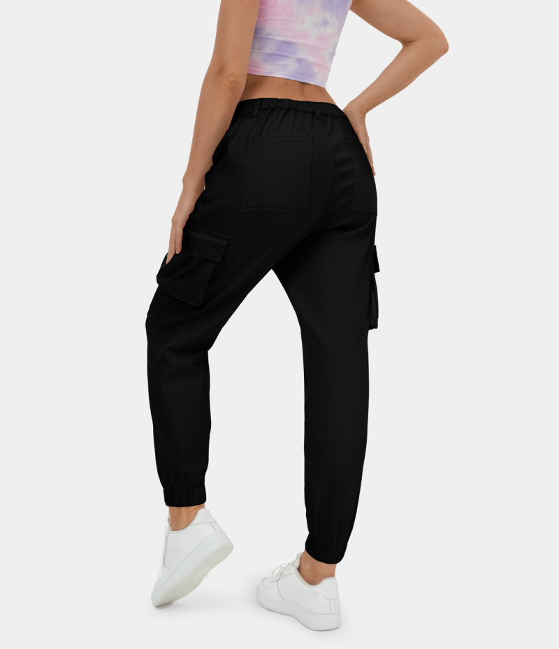 Halara Mid Rise Button Zipper Multi Pockets Casual Cargo Women's Jogger Black | 539814-EHI