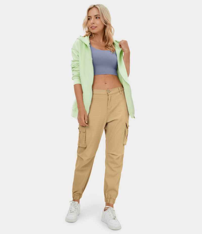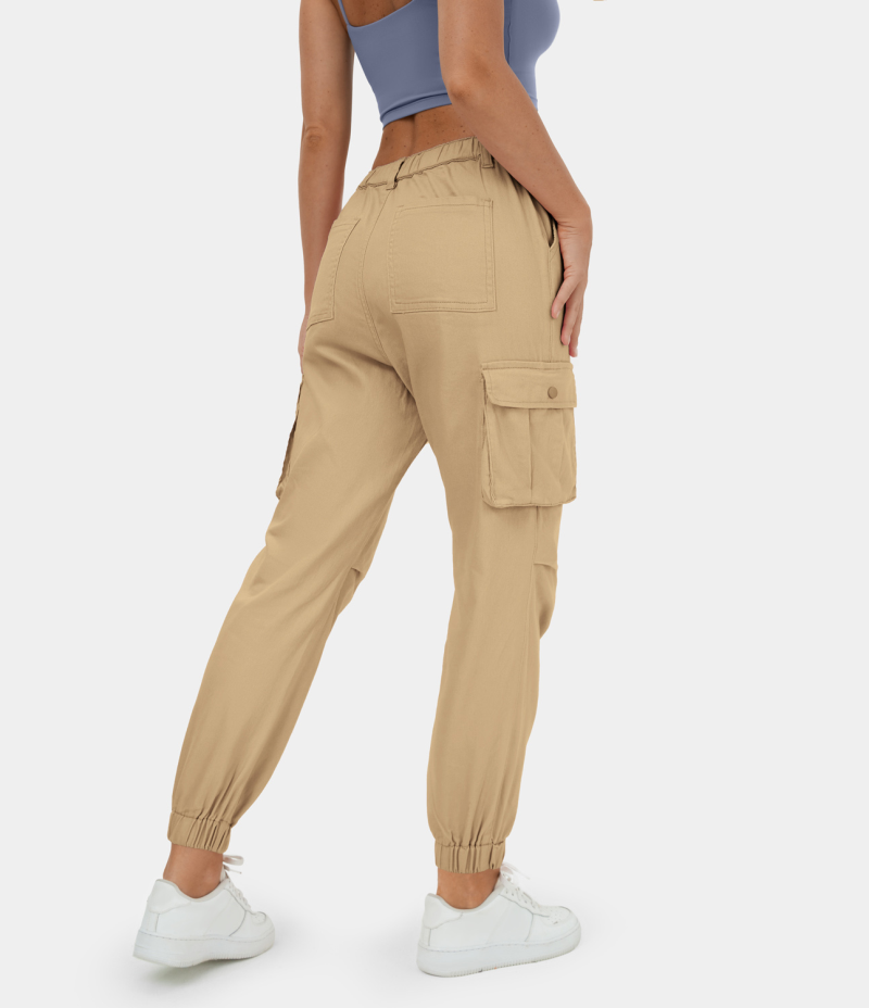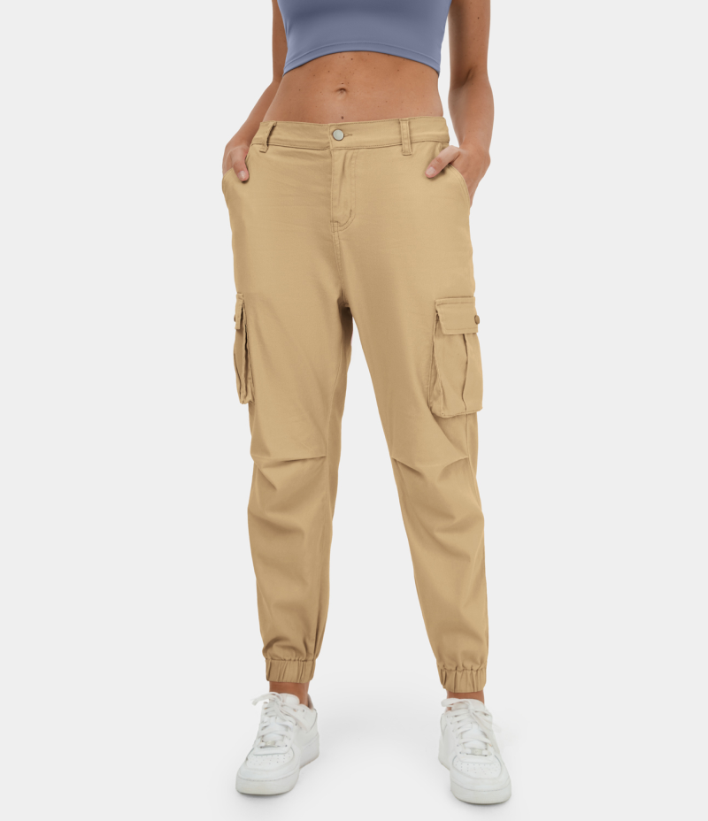 :: Halara Mid Rise Button Zipper Multi Pockets Casual Cargo Women's Jogger Curry | 903857-ANB