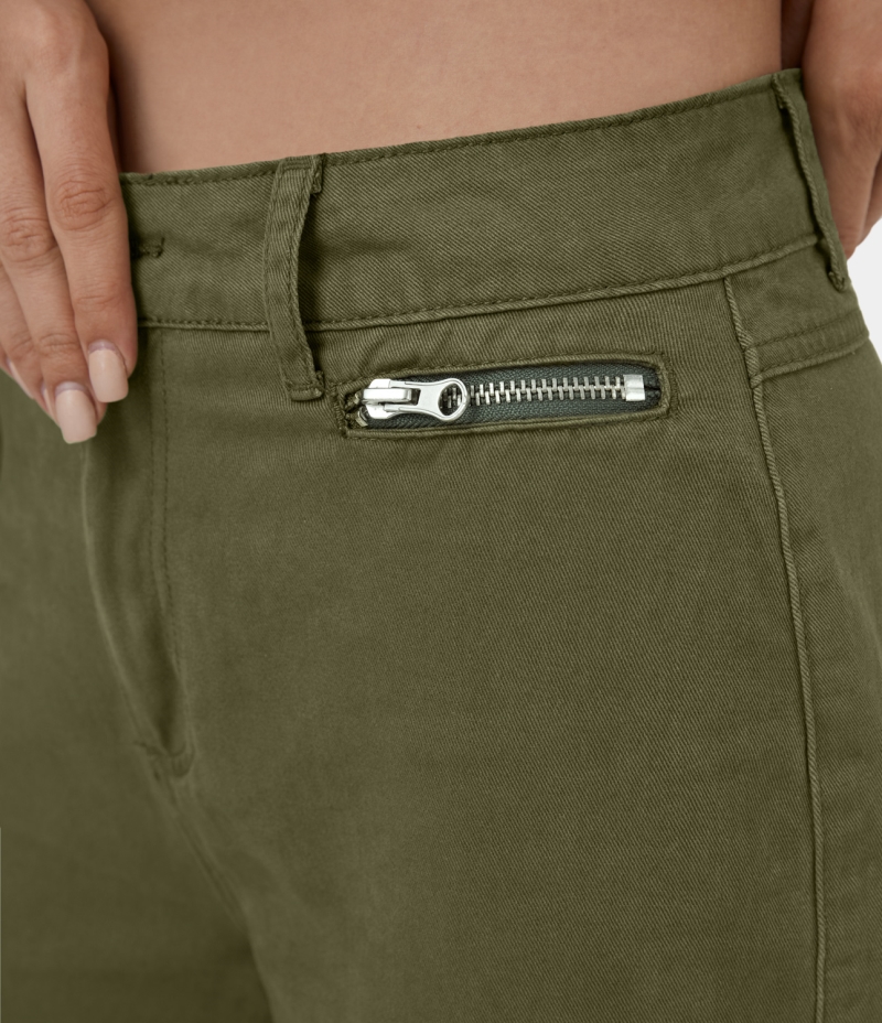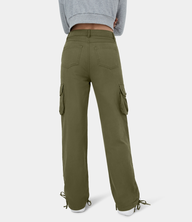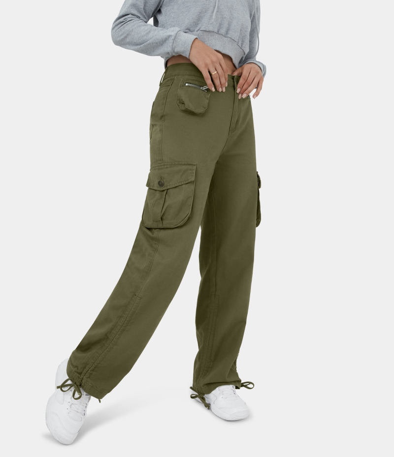 :: Halara Mid Rise Button Zipper Multiple Pockets Straight Leg Casual Cargo Women's Pants Sphagnum | 845160-SZJ
