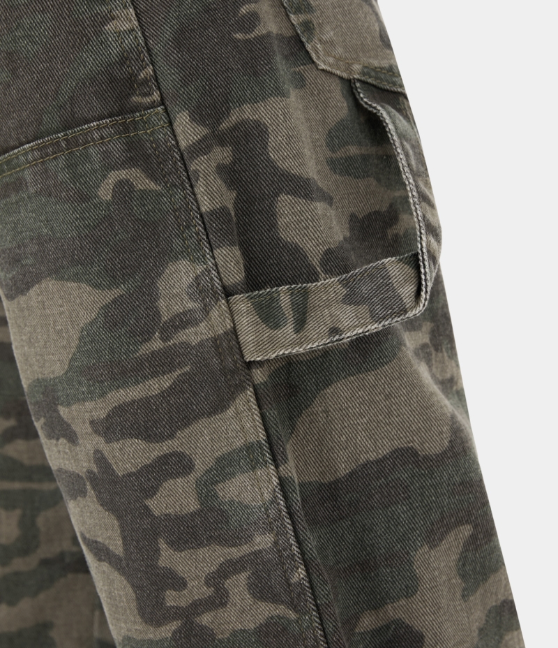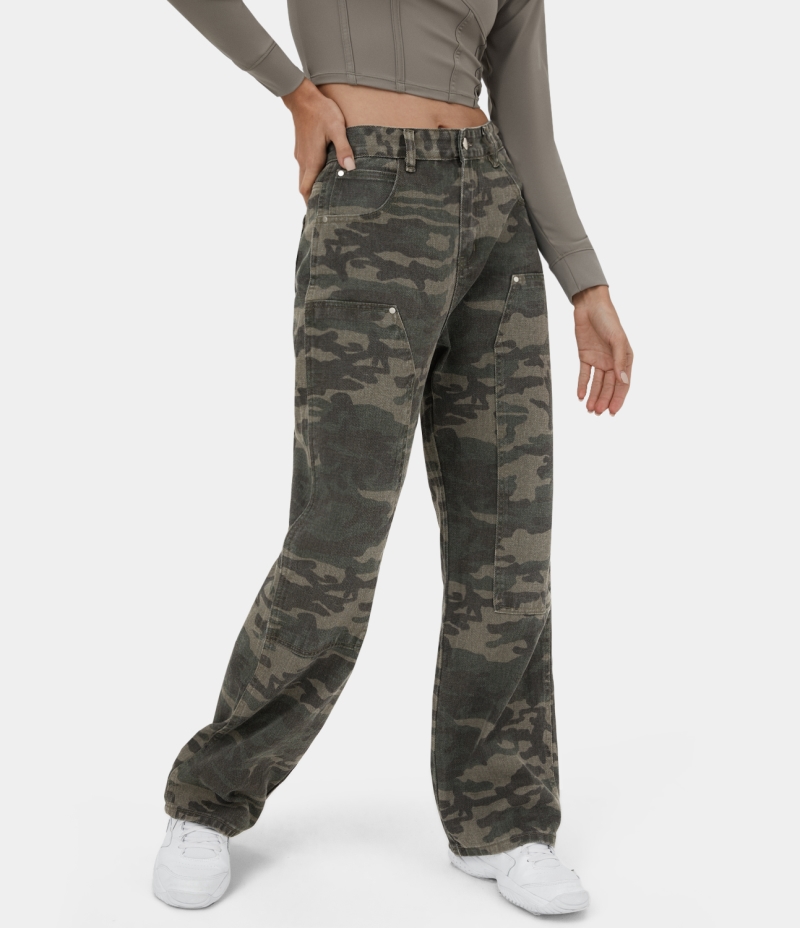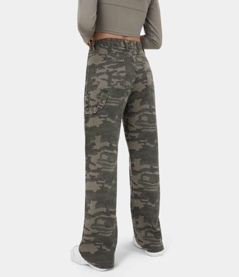 :: Halara Mid Rise Button Zipper Pocket Camo Casual Straight Leg Women's Pants Retro Camouflage | 490873-MFE