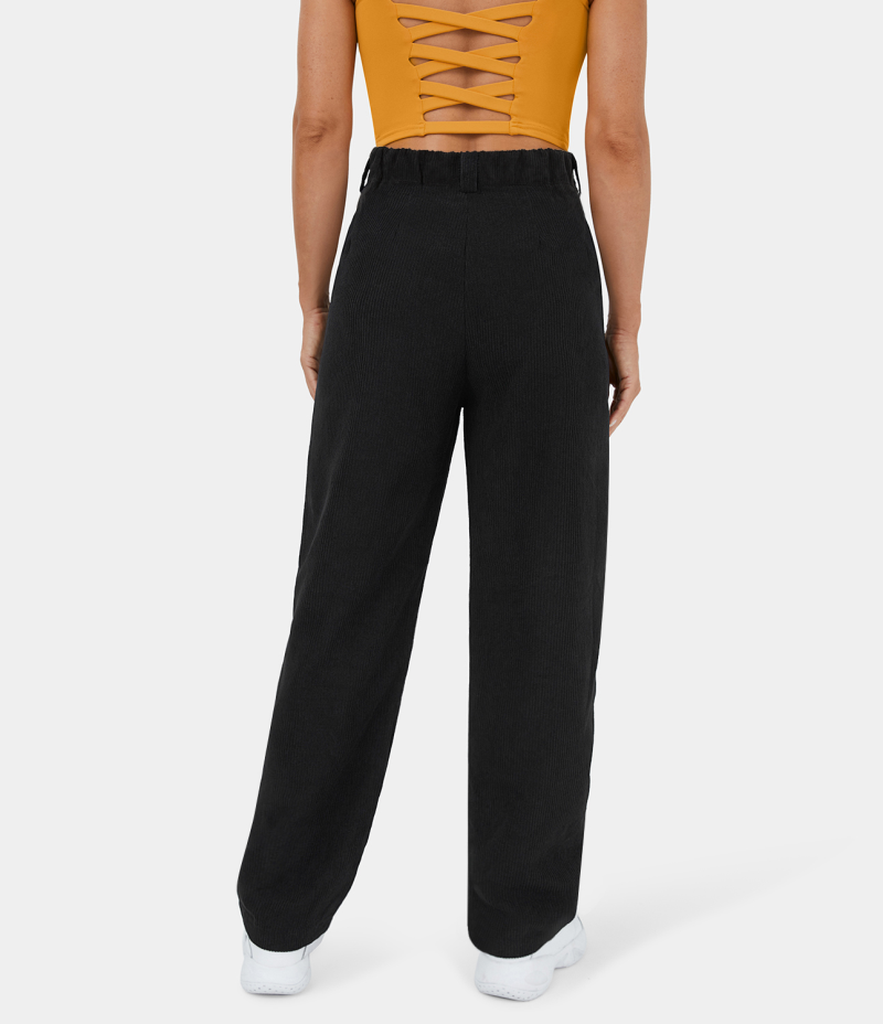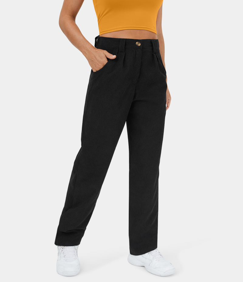 :: Halara Mid Rise Button Zipper Side Pocket Corduroy Casual Women's Pants Black | 861304-DNF