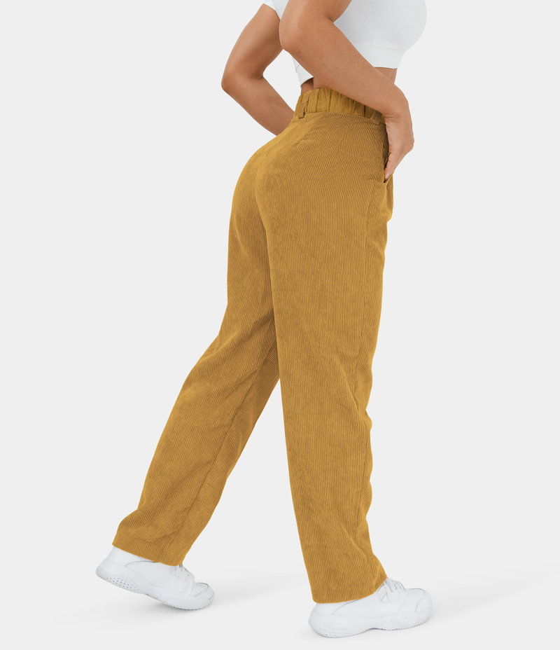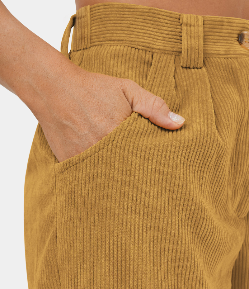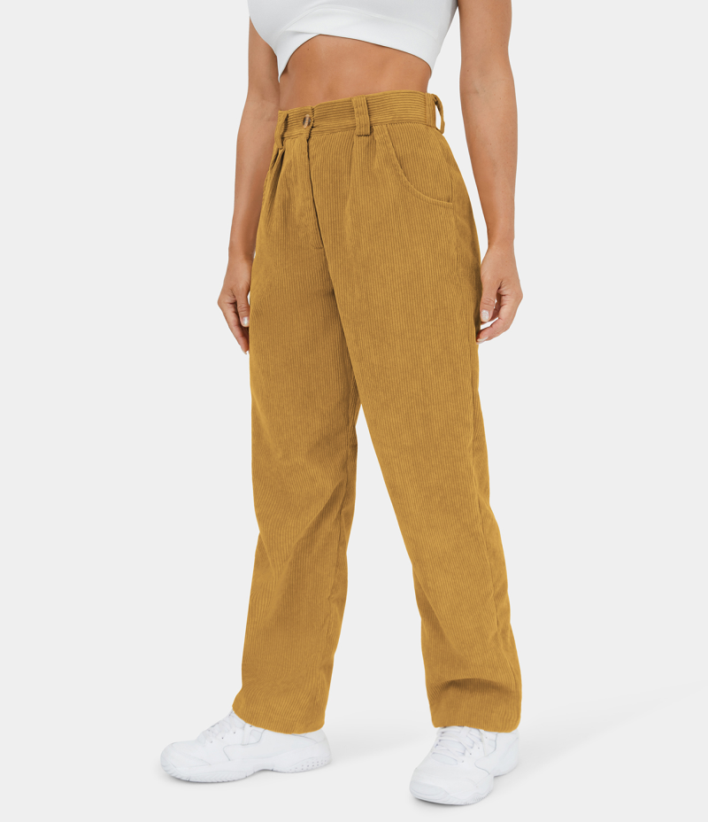 Halara Mid Rise Button Zipper Side Pocket Corduroy Casual Women's Pants Chai Tea | 604571-WIL