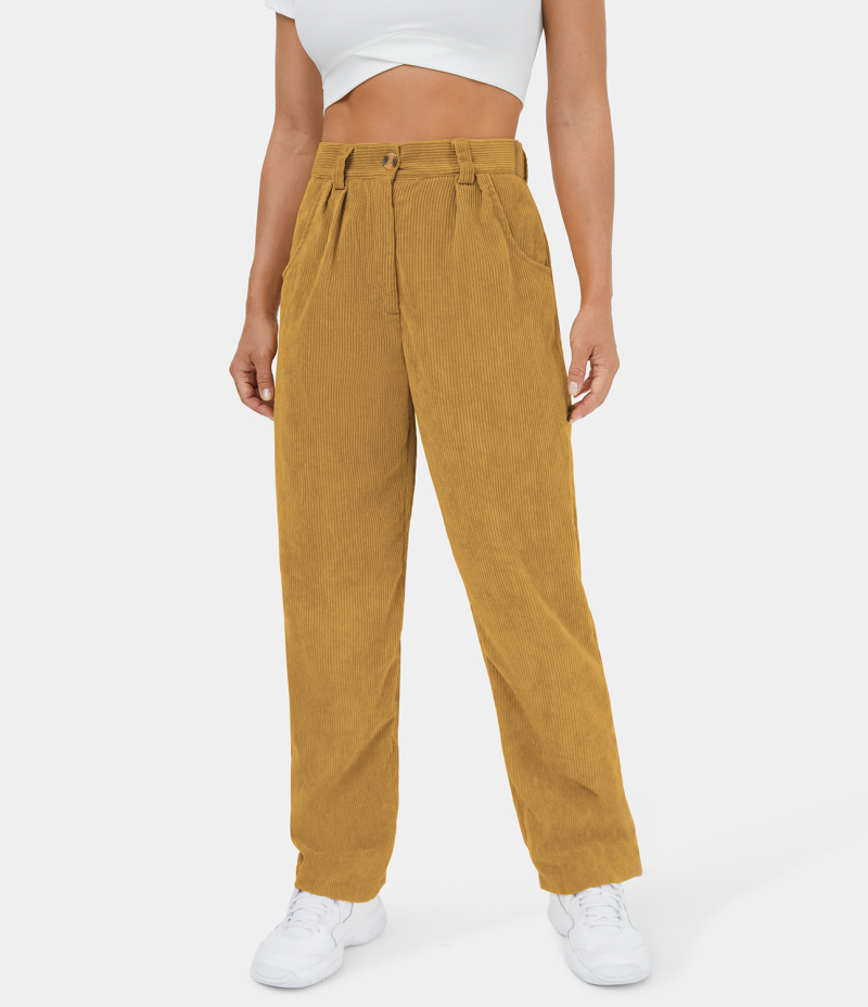 Halara Mid Rise Button Zipper Side Pocket Corduroy Casual Women's Pants Chai Tea | 647591-SDN