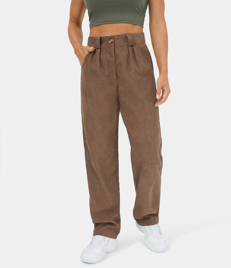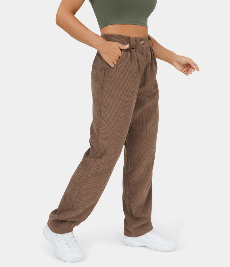 :: Halara Mid Rise Button Zipper Side Pocket Corduroy Casual Women's Pants Coca Mocha | 186054-XQK