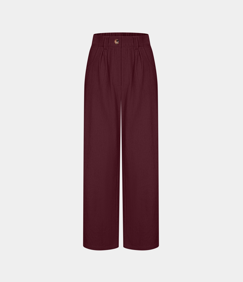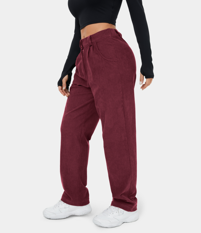 :: Halara Mid Rise Button Zipper Side Pocket Corduroy Casual Women's Pants Deep Wine | 530782-HYD
