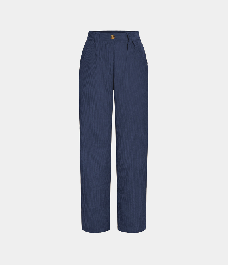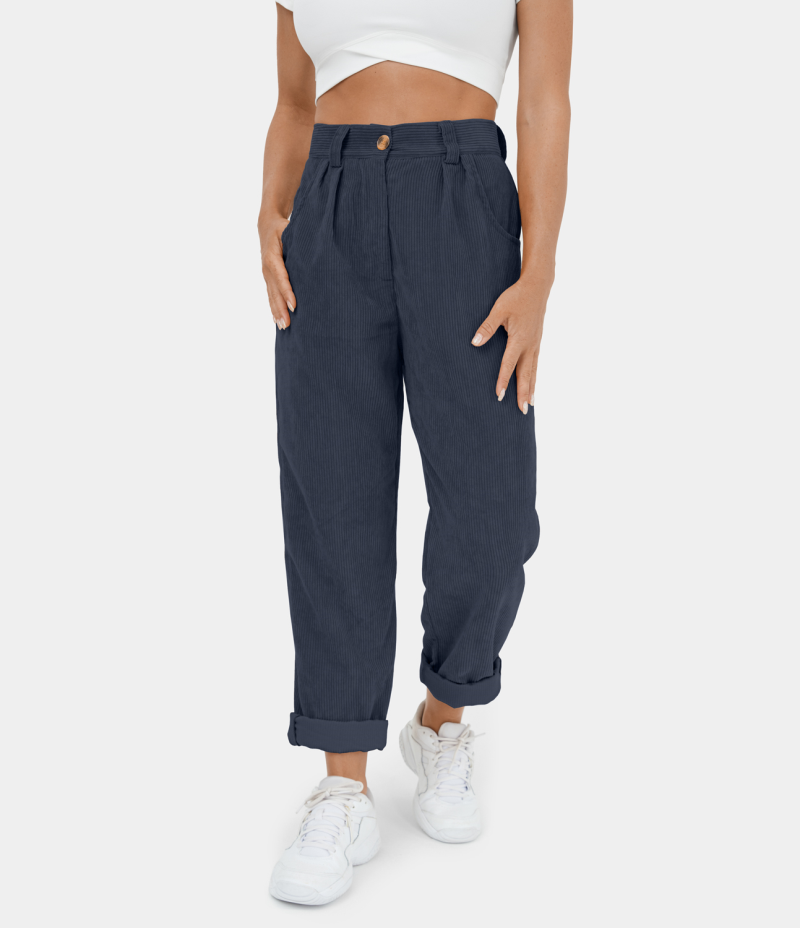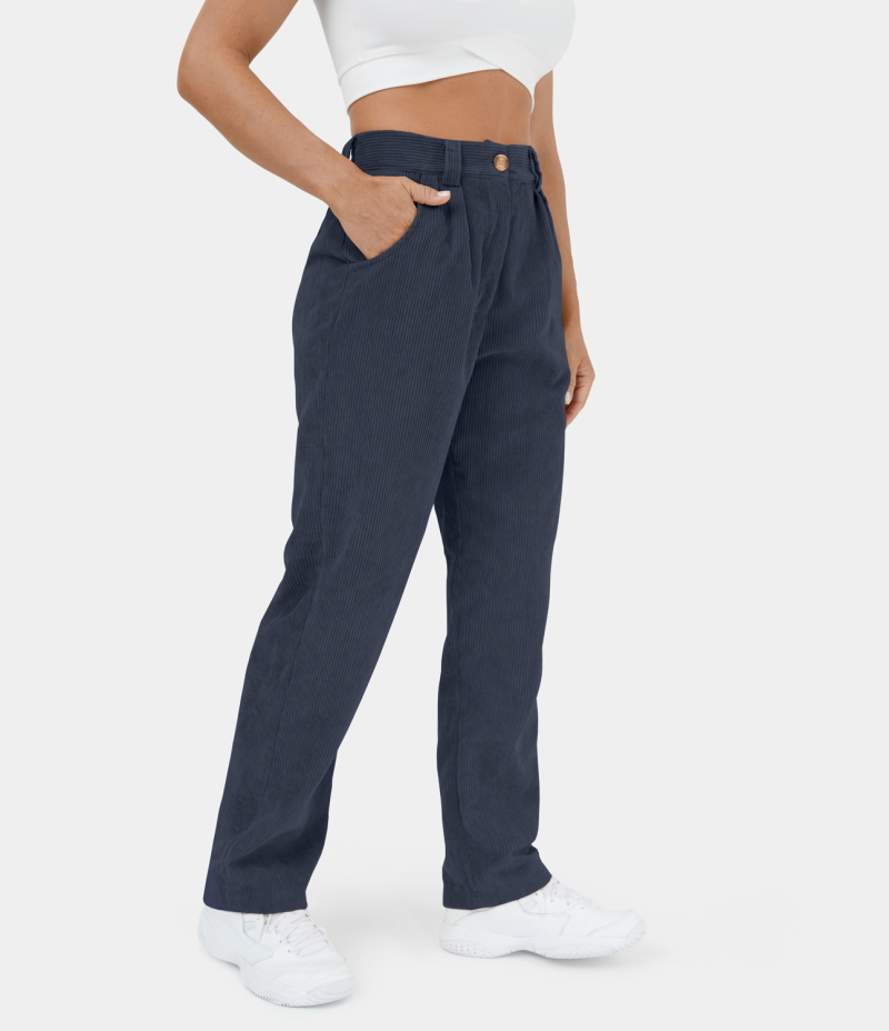 :: Halara Mid Rise Button Zipper Side Pocket Corduroy Casual Women's Pants Peacoat | 152896-RDI